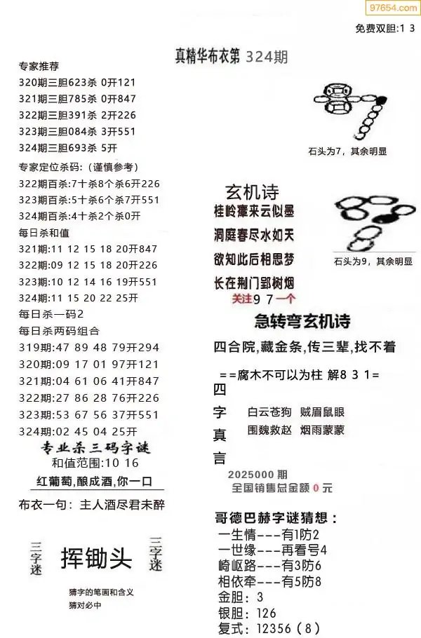 (9)25年324期当期全站杀号定胆图