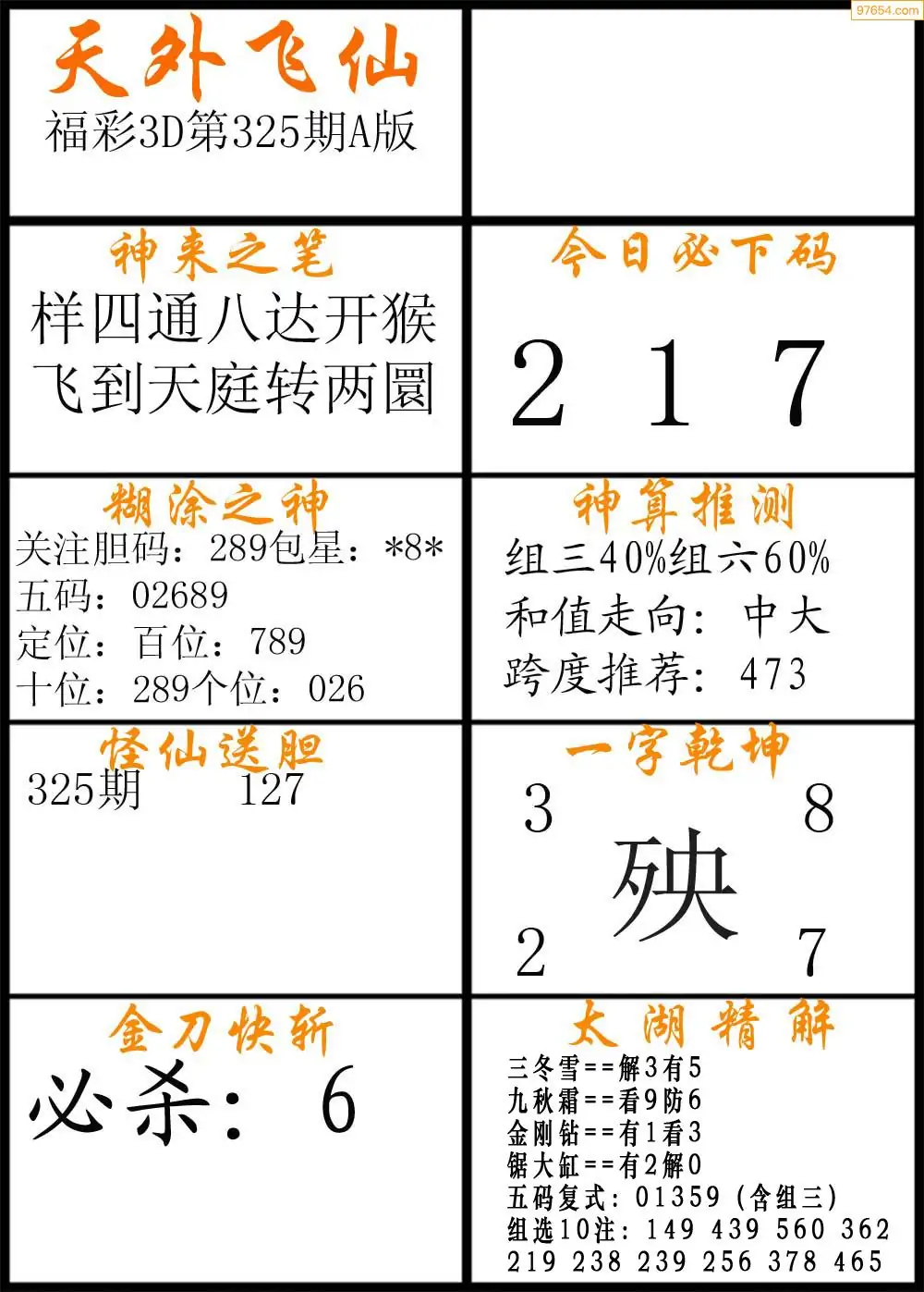 325期福彩3d天外飞仙A版