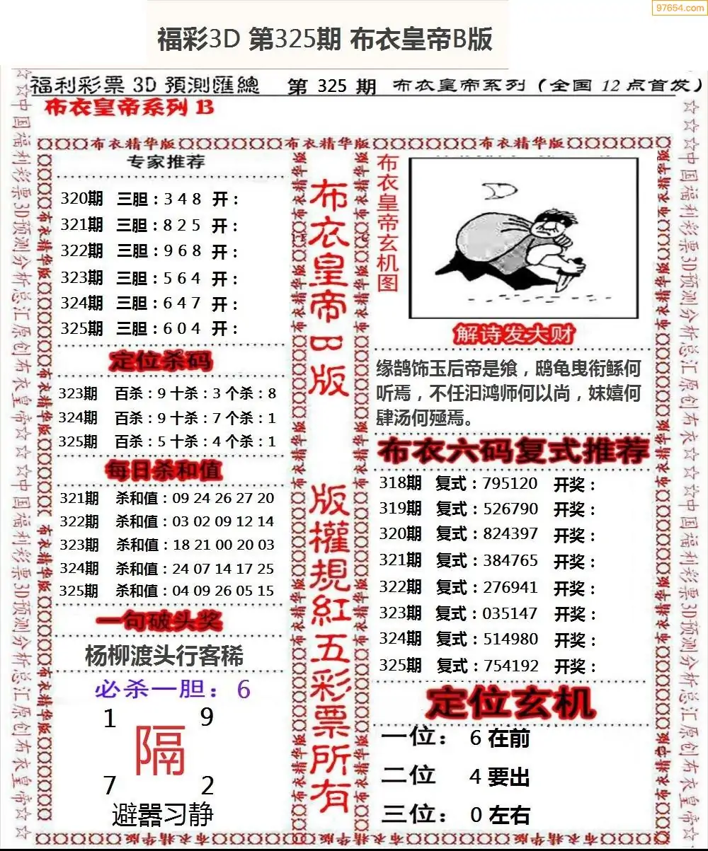 福彩325期3d真精华布衣+布衣早报(转载)