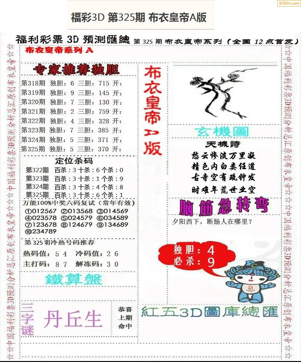 325期3D彩吧图库精华布衣图123456分享