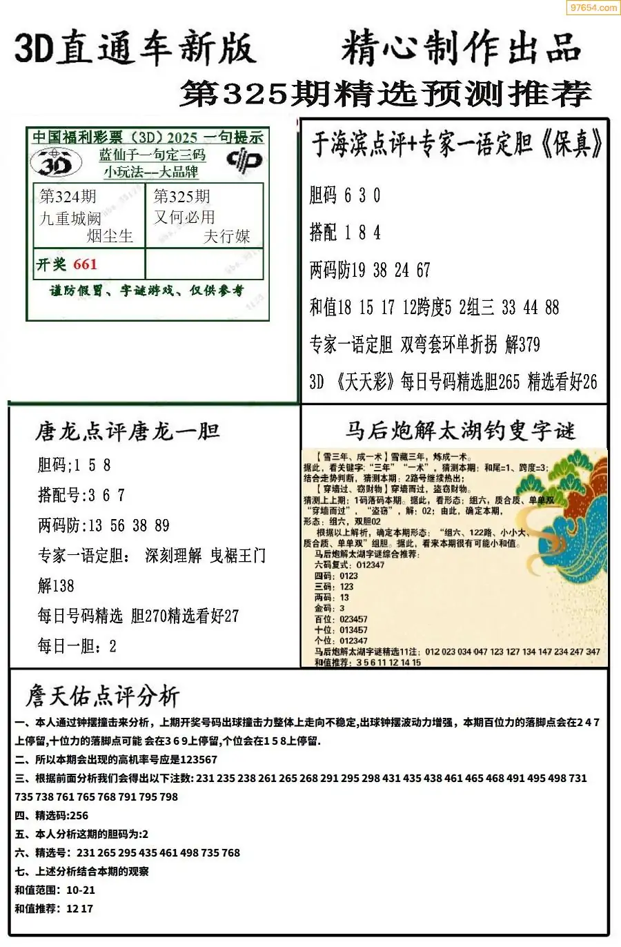 25年326期3d选号彩报图谜画谜