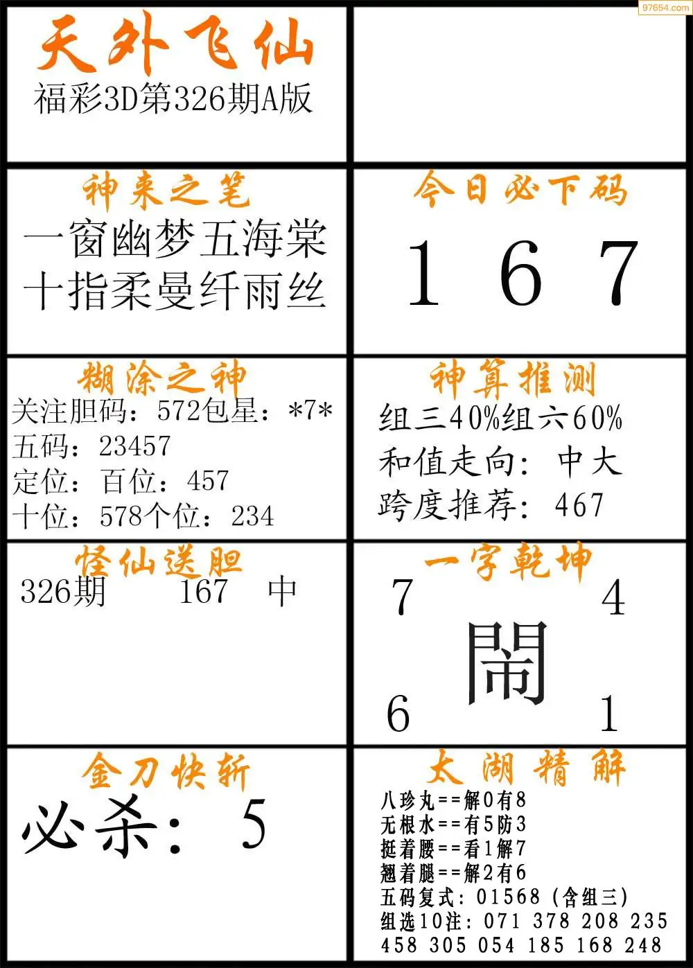 326期福彩3d天外飞仙A版