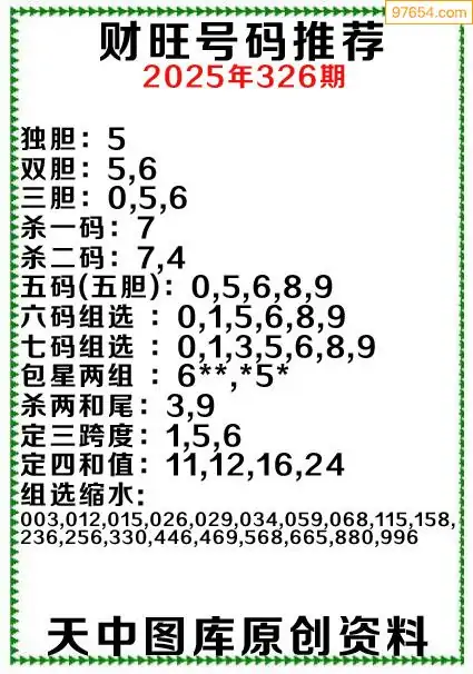 326期97654本站收集胆码出号预测