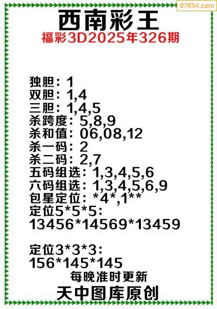 2025326期彩彩网3d原创图迷搜集(天中整理)