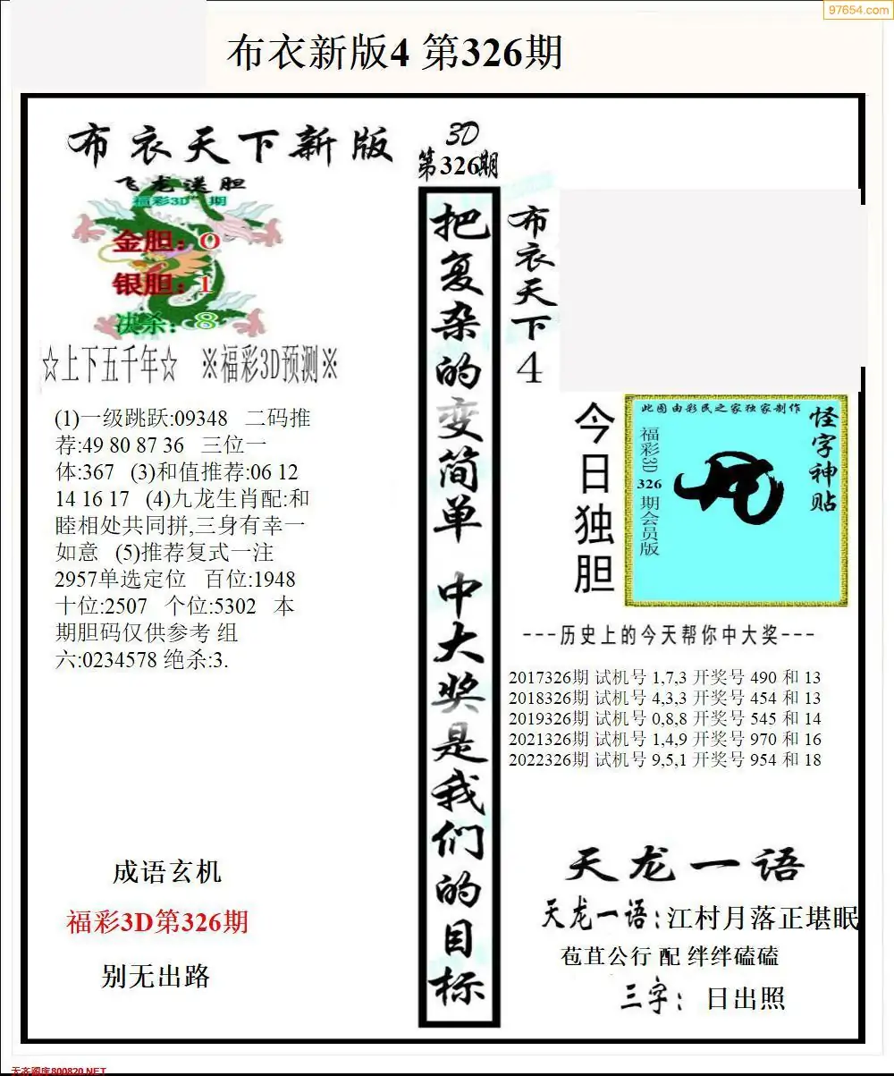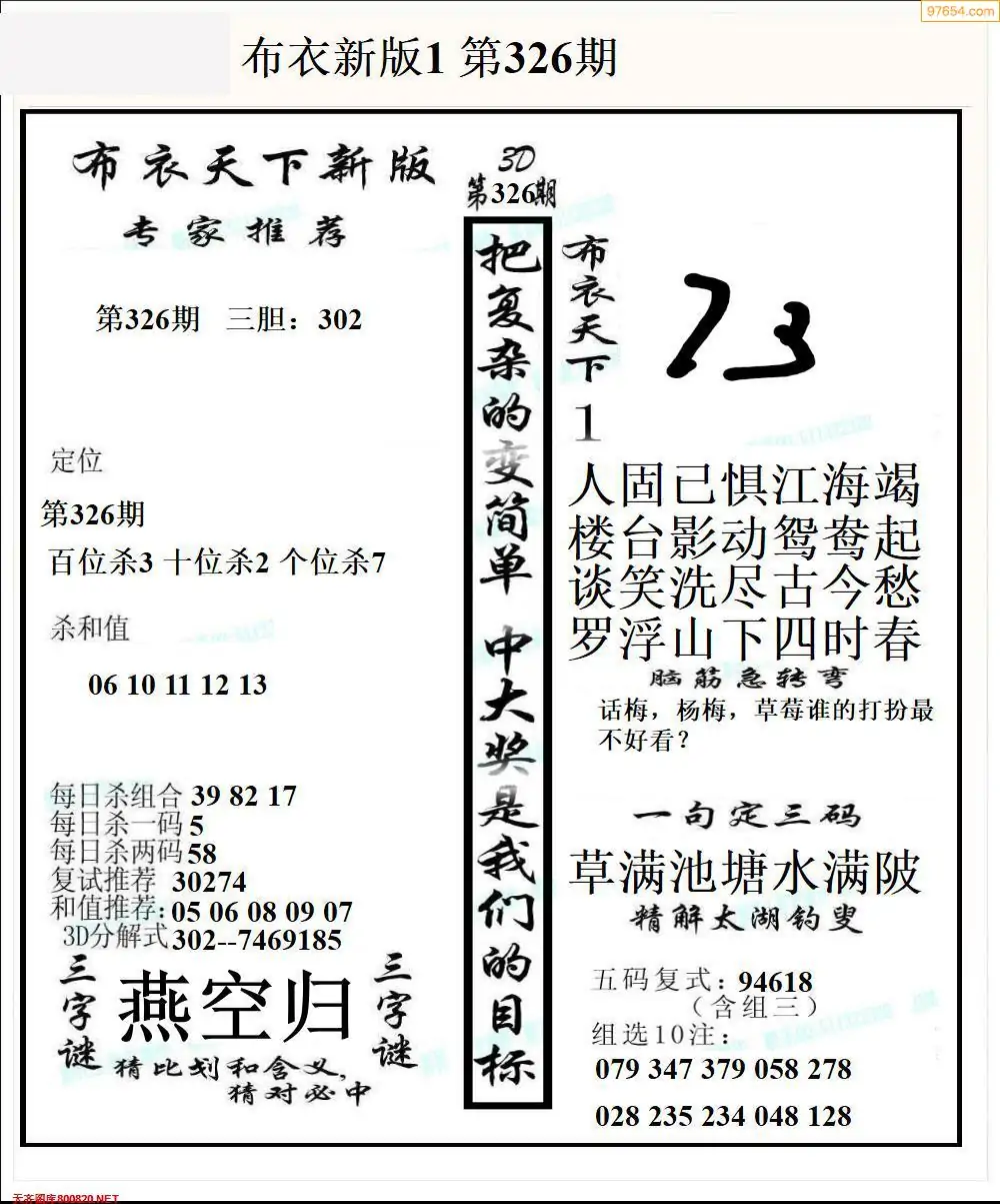 福彩326期3d真精华布衣+布衣早报(转载)