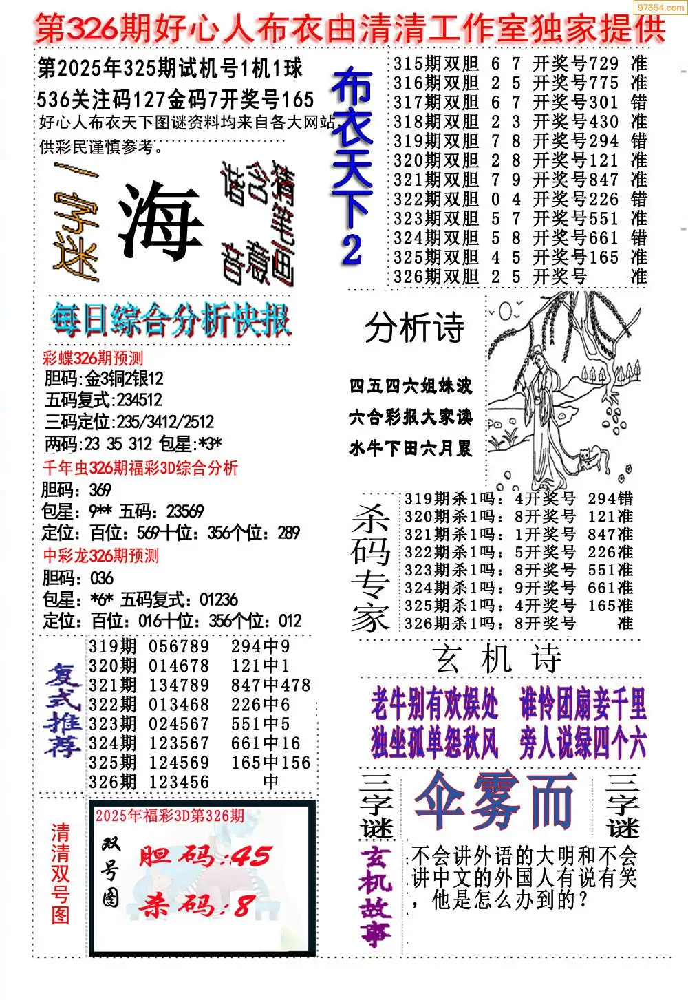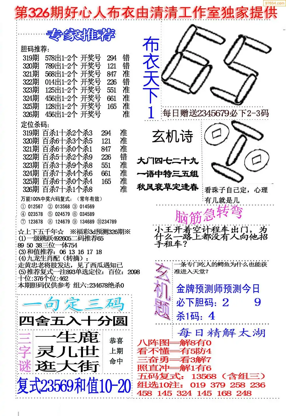 福彩326期3d真精华布衣+布衣早报(转载)