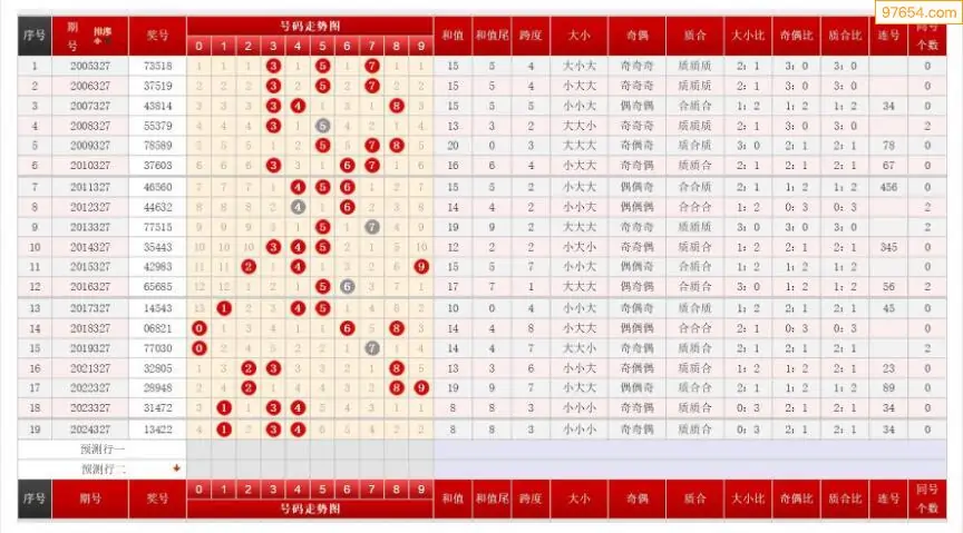 327期排列三历史号码对比图+数据走势分析