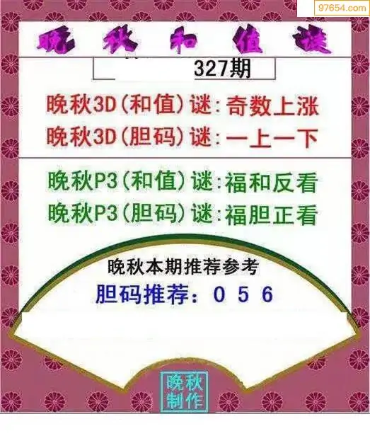 25327期晚秋和值谜胆码推荐