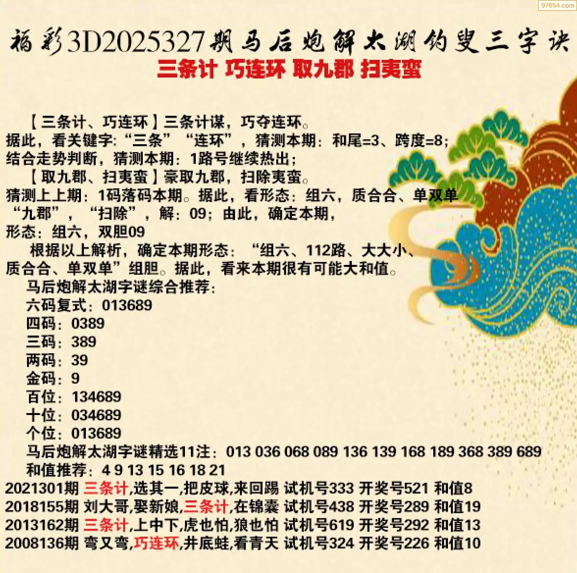 25327期福彩3d太湖钓叟三字诀历史汇总
