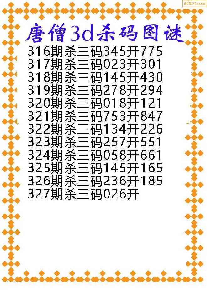 2025327期彩彩网3d原创图迷搜集(天中整理)
