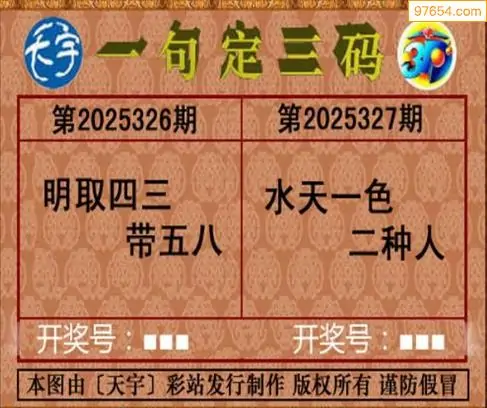 25327期天宇一句定三码3D图库