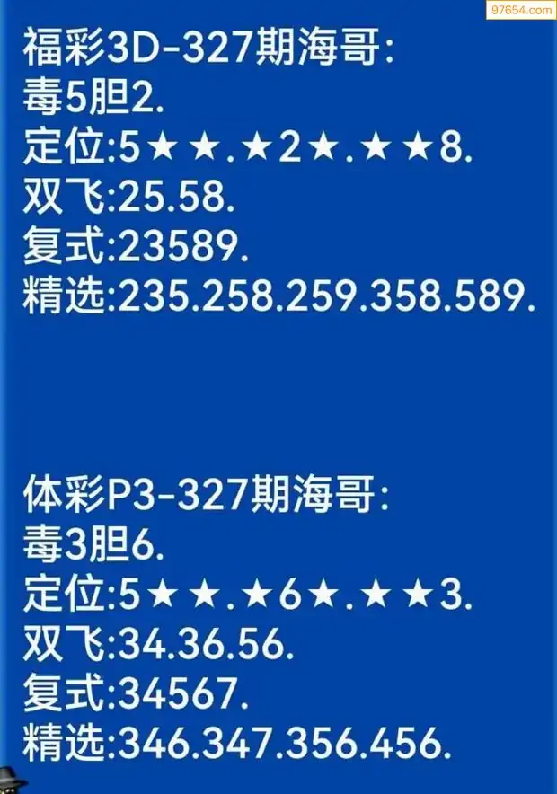 海哥福彩327期3d今日双胆