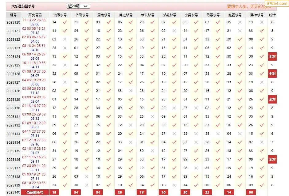 140期大乐透彩经十大专家前区杀号汇总