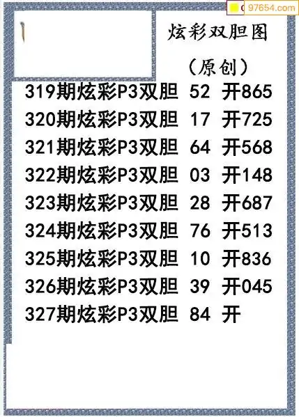 25328期神彩飞扬体彩P3三胆图谜