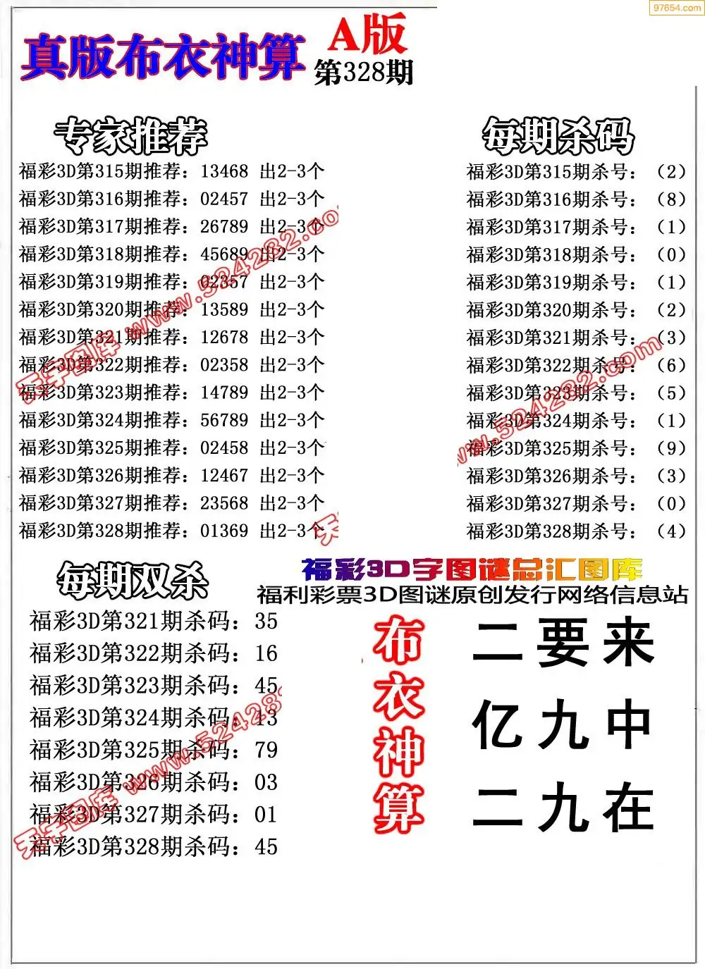 福彩328期3d真精华布衣+布衣早报(转载)