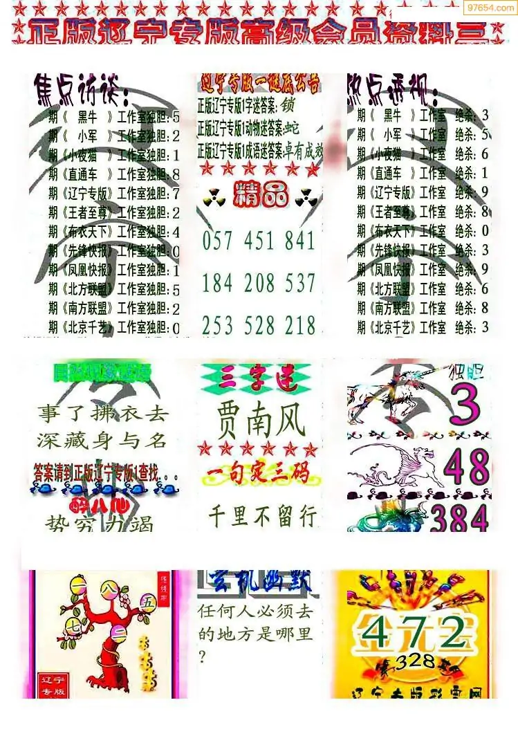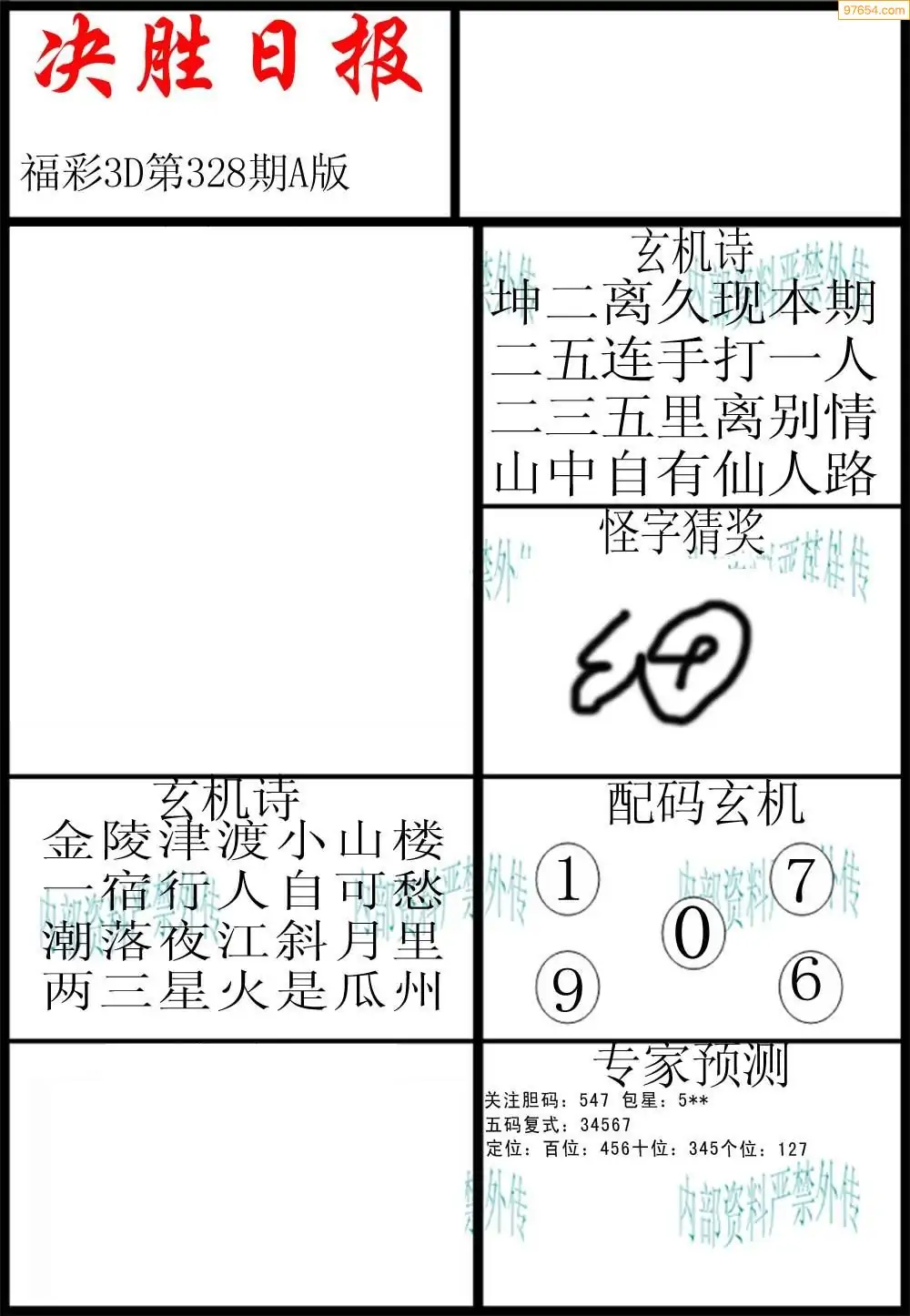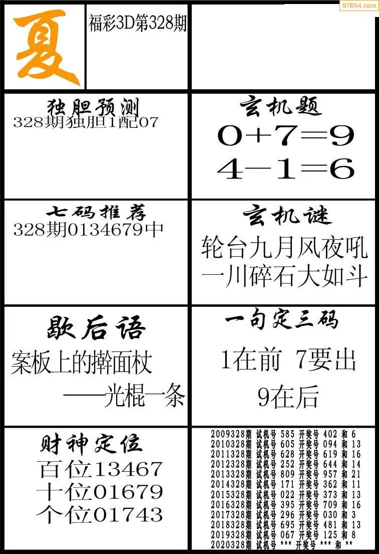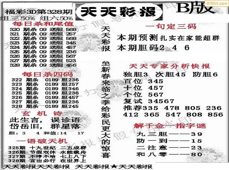福彩3D328期天牛彩吧套图整合总汇