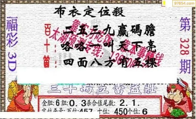 福彩3D328期天牛彩吧套图整合总汇