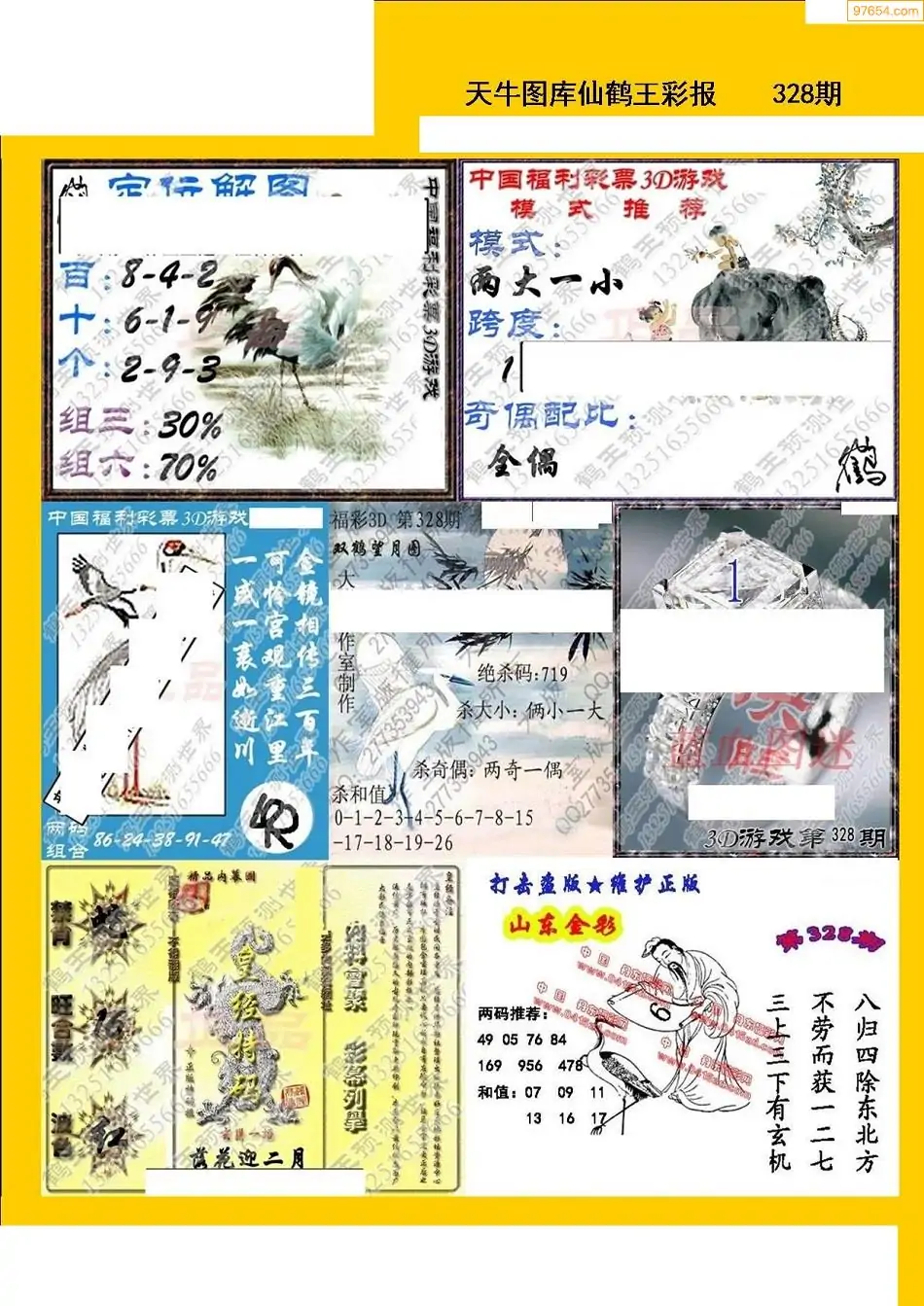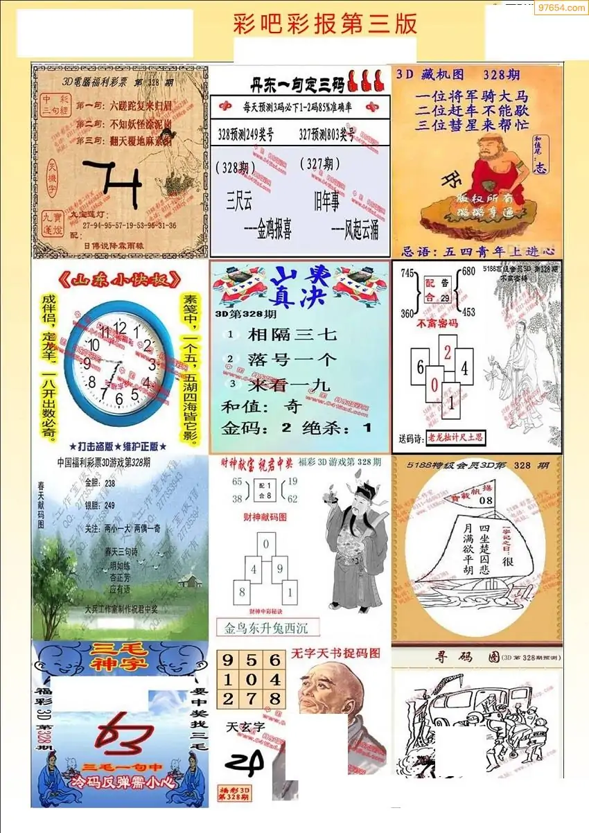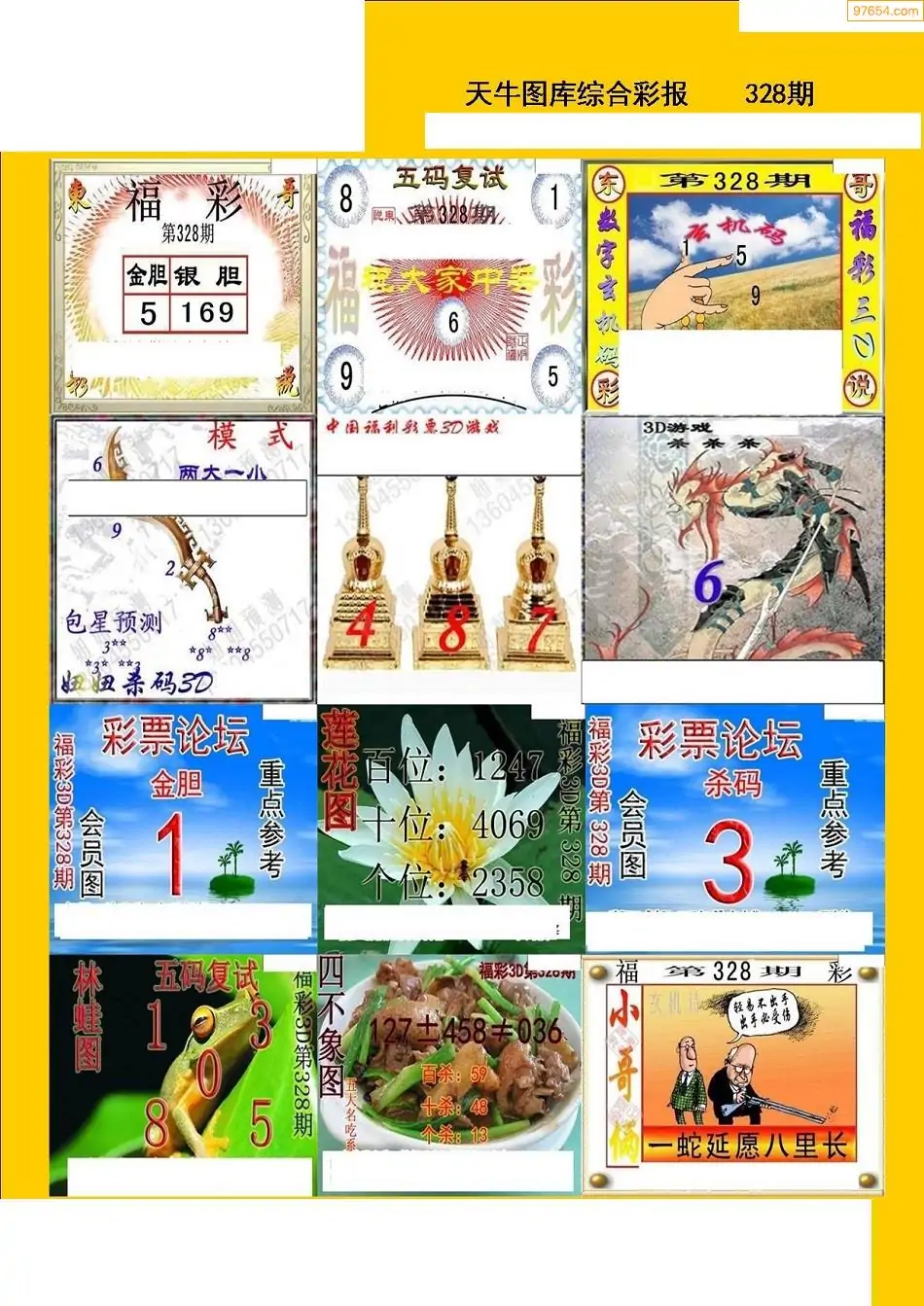 福彩3D328期天牛彩吧套图整合总汇
