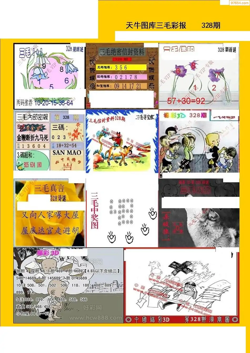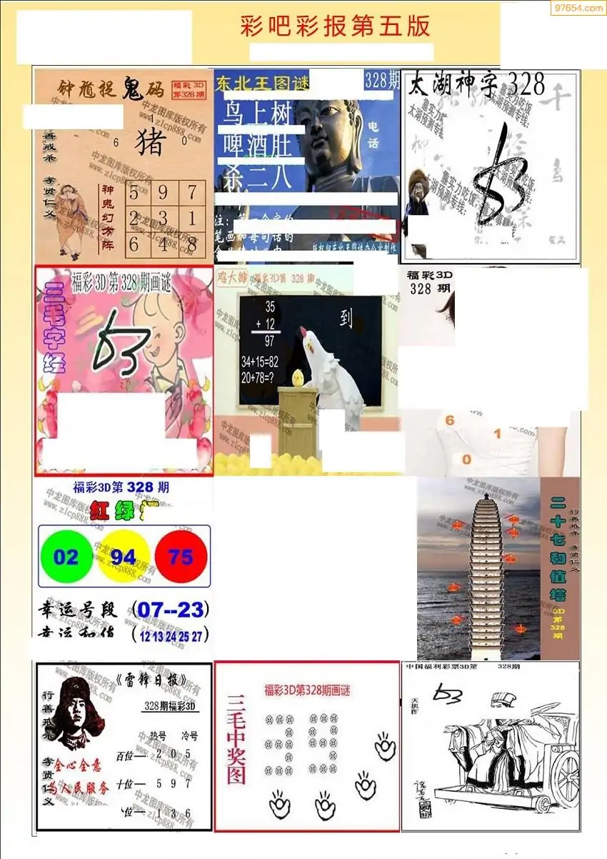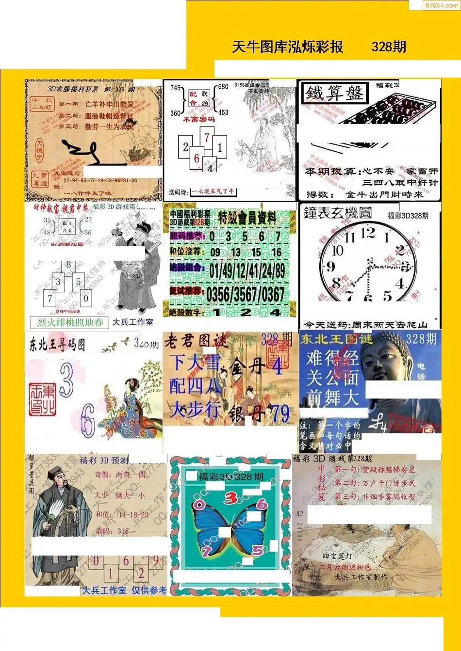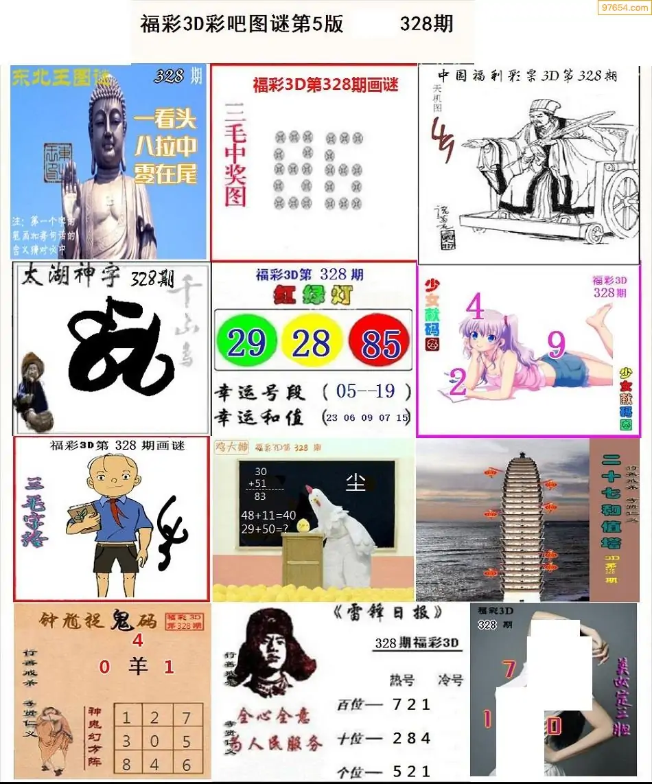 福彩3D328期天牛彩吧套图整合总汇