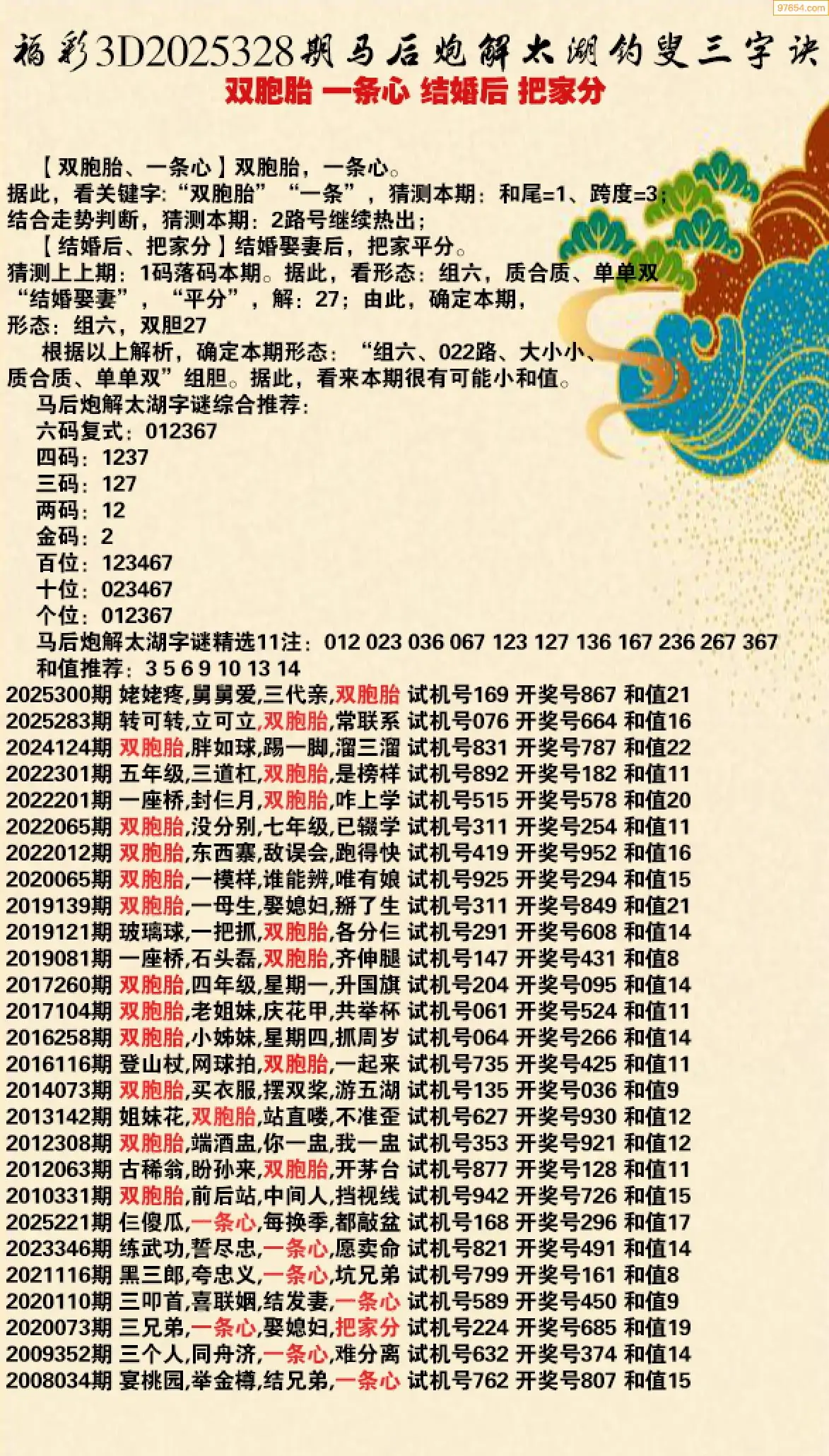 25328期福彩3d太湖钓叟三字诀历史汇总