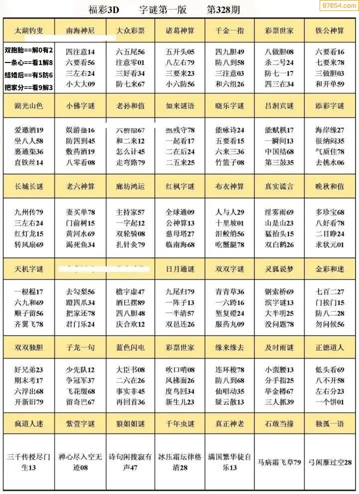 328期3D牛彩预测报+彩吧字谜报