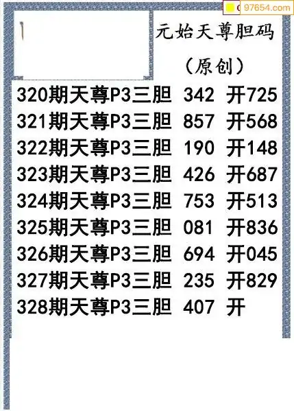 25328期元始天尊排列3胆码图