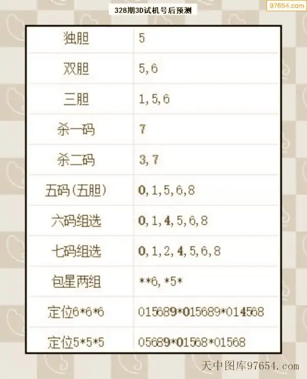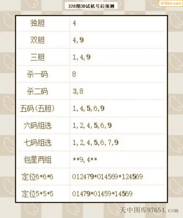 328期西南胆王预测本期3D开奖结果
