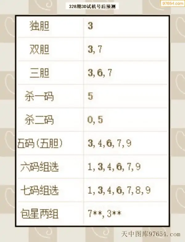 328期西南胆王预测本期3D开奖结果