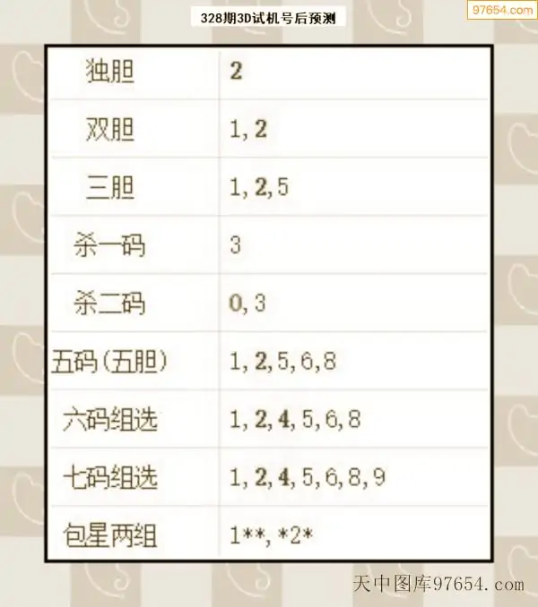 2025328期财旺预测今晚3d独胆