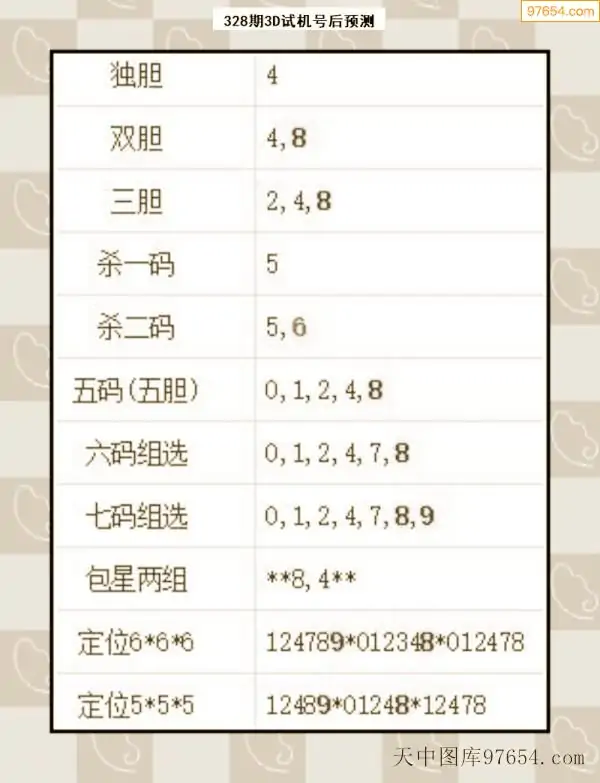2025328期财旺预测今晚3d独胆