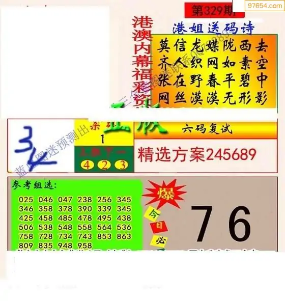 25年329期福彩仙姑综合图