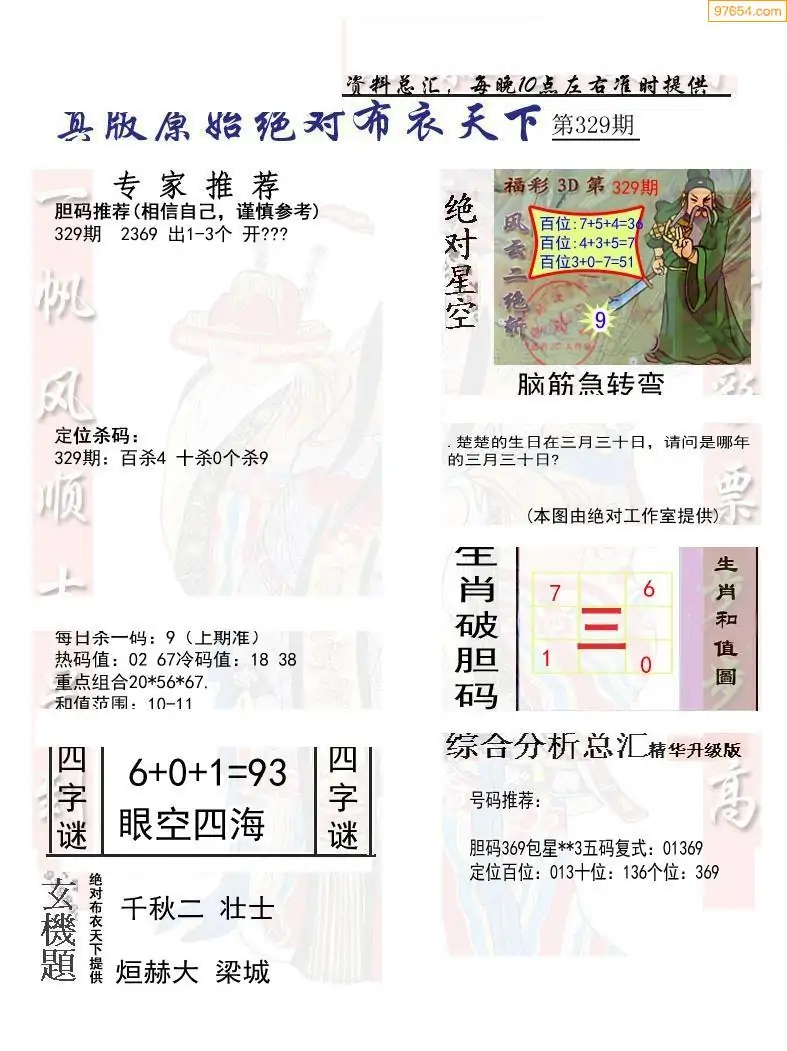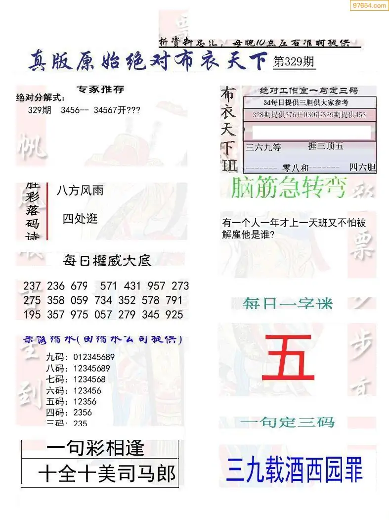 329期真版布衣神算专家推荐