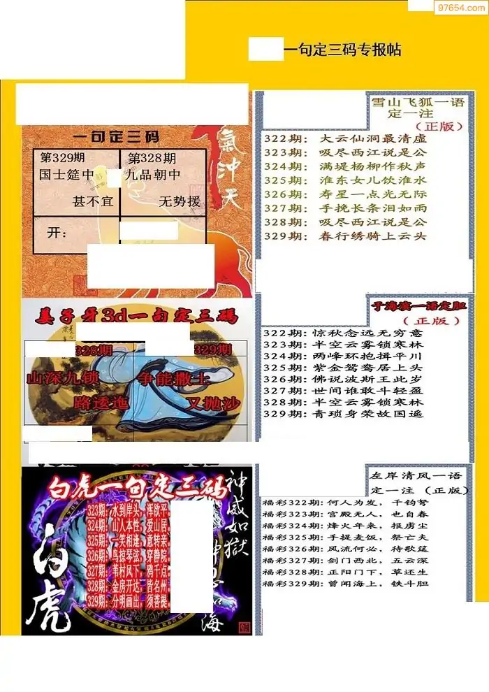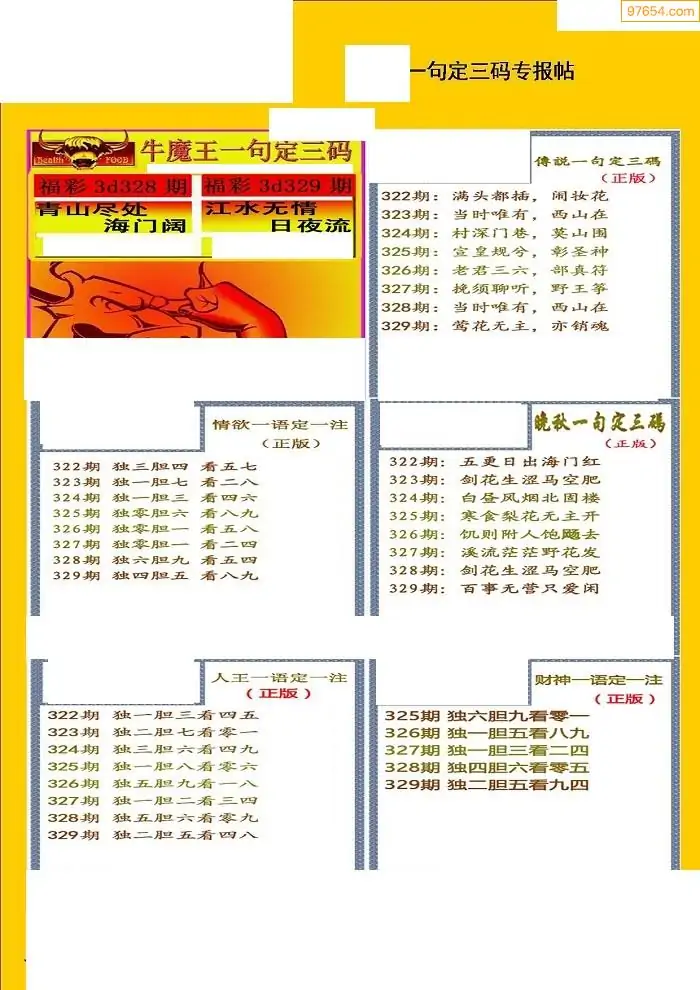 329期3D牛彩预测报+彩吧字谜报