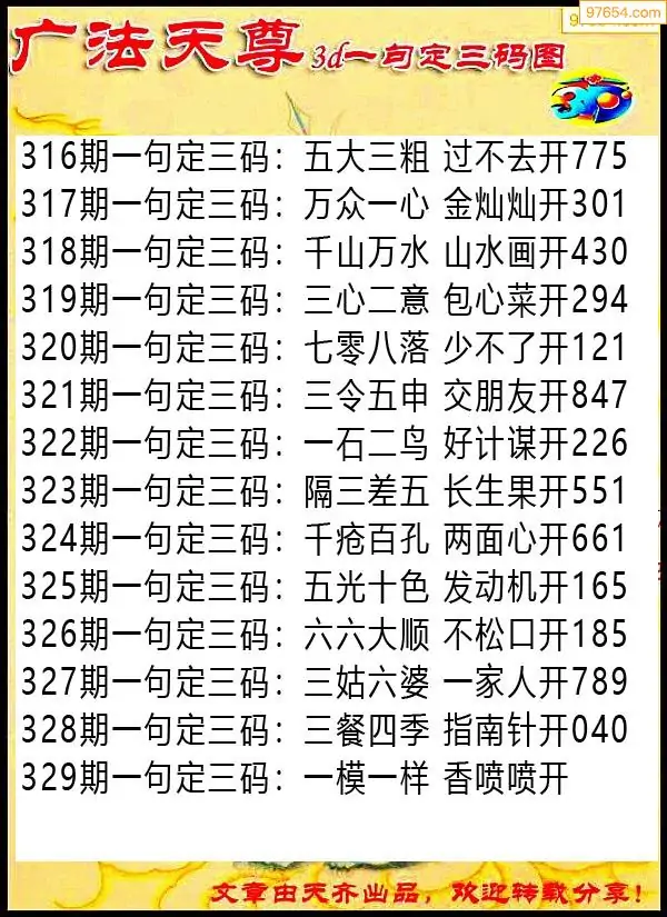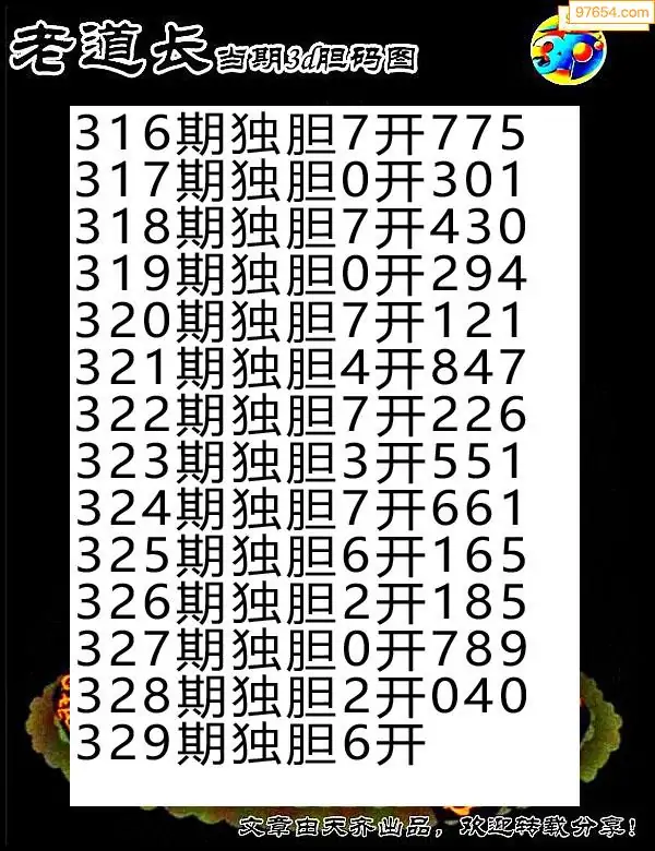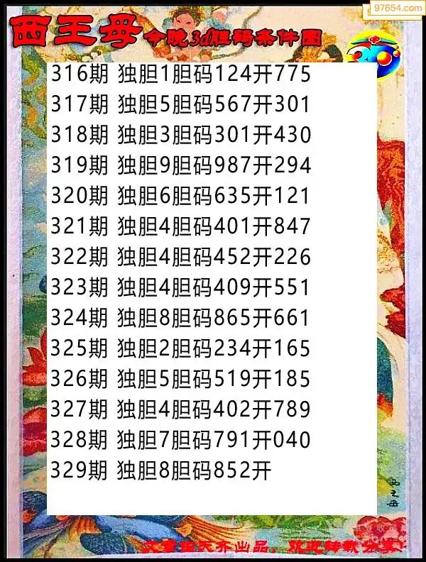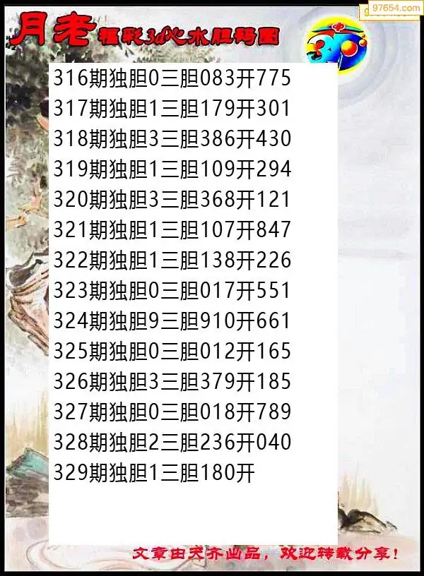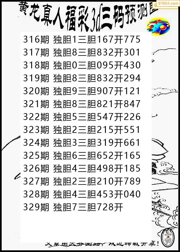 329期97654本站收集胆码出号预测
