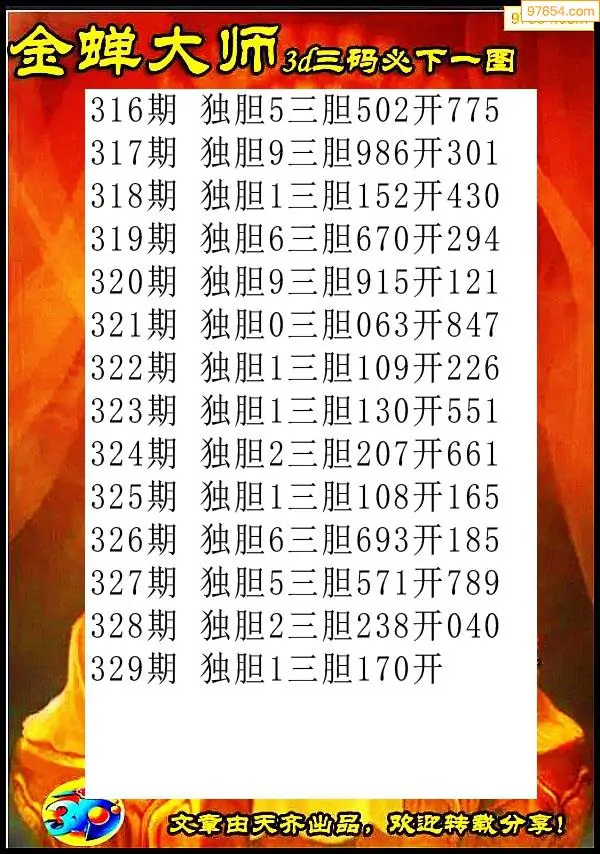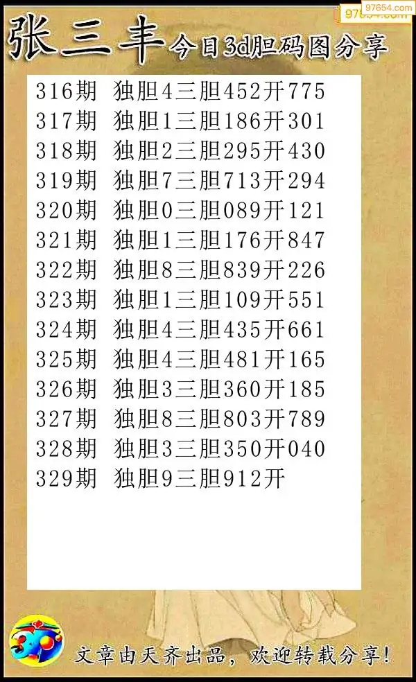 天齐网3d25年329期胆码图 胆:58
