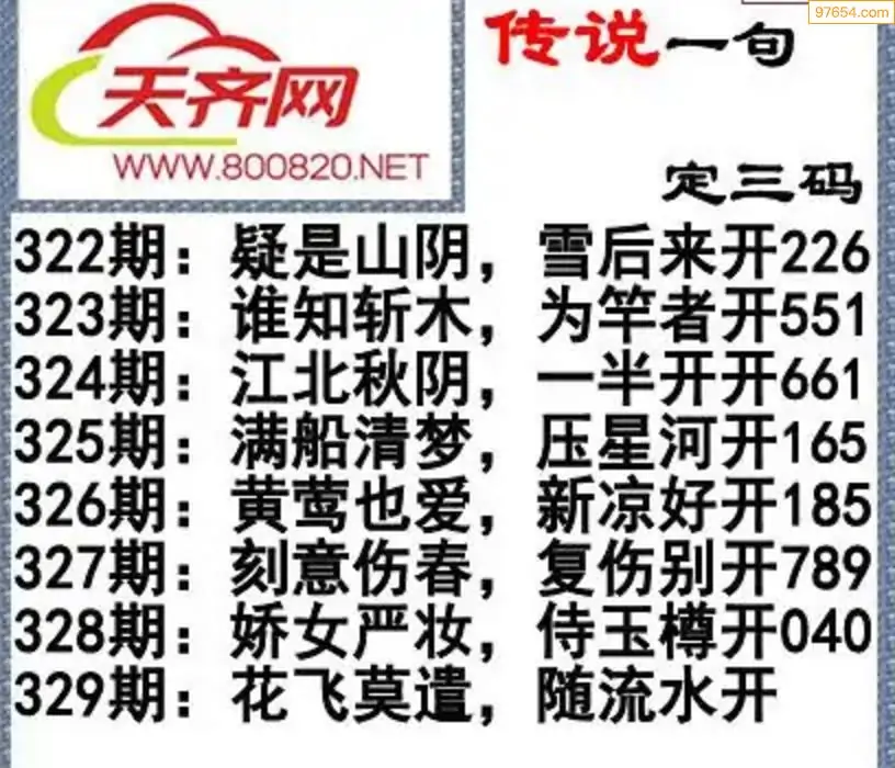 329期3D晚秋(和值)谜:上个月有 D:看胆半年