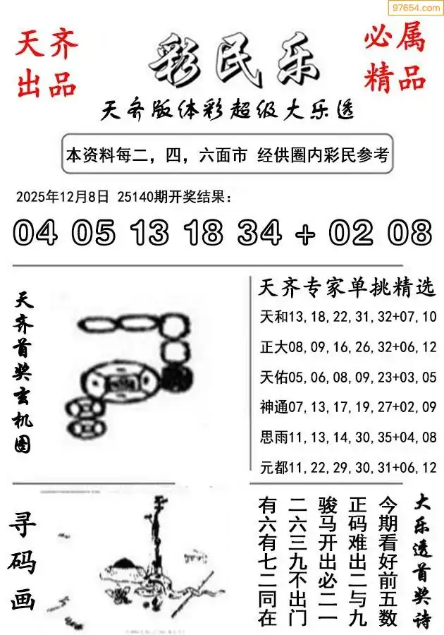 体彩大乐透141期贵州老戴本期龙头凤尾推荐