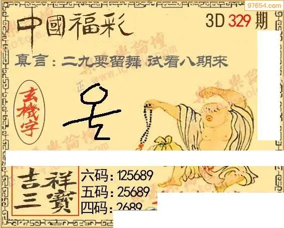 2025年329期福彩3d怪字神贴