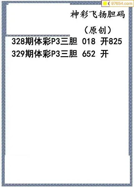 25329期神彩飞扬体彩P3三胆图谜