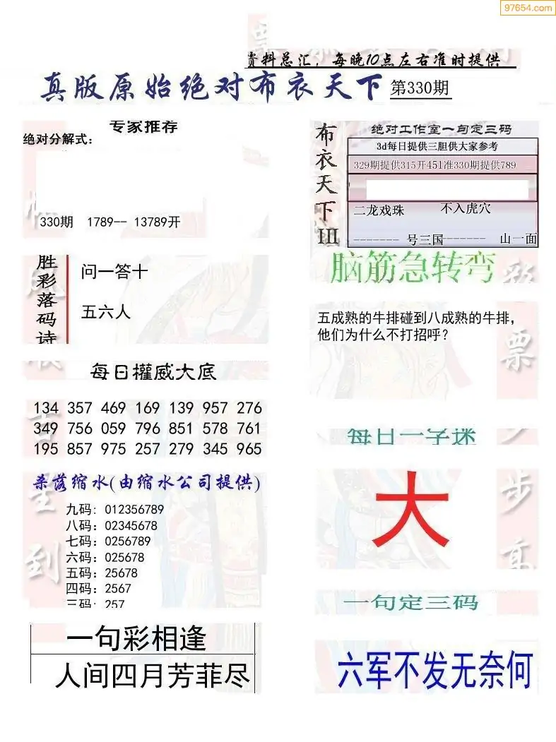 (1)25年330期今日3d图谜总汇
