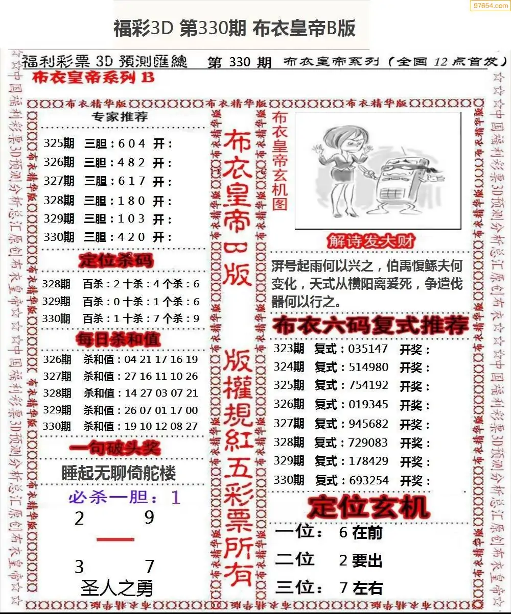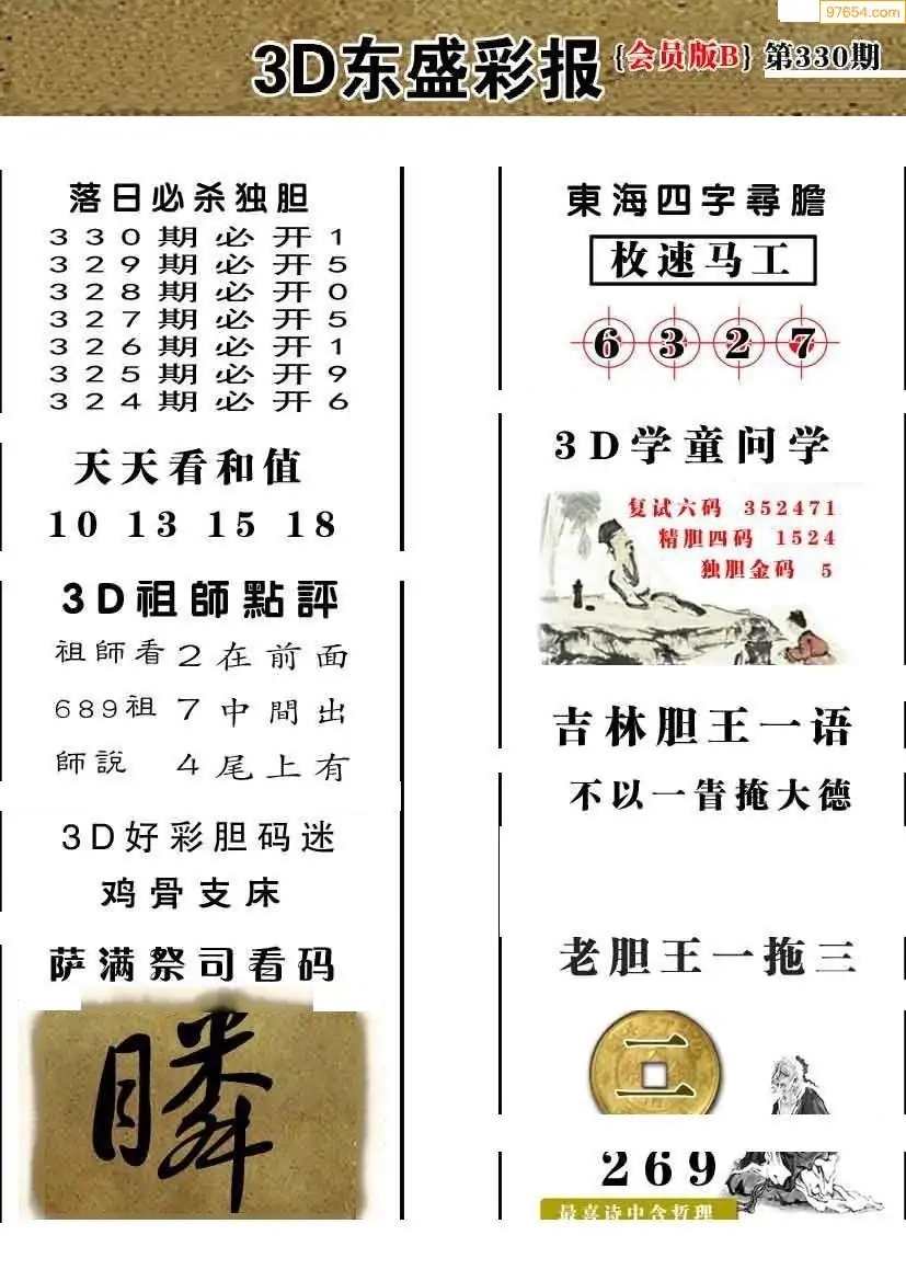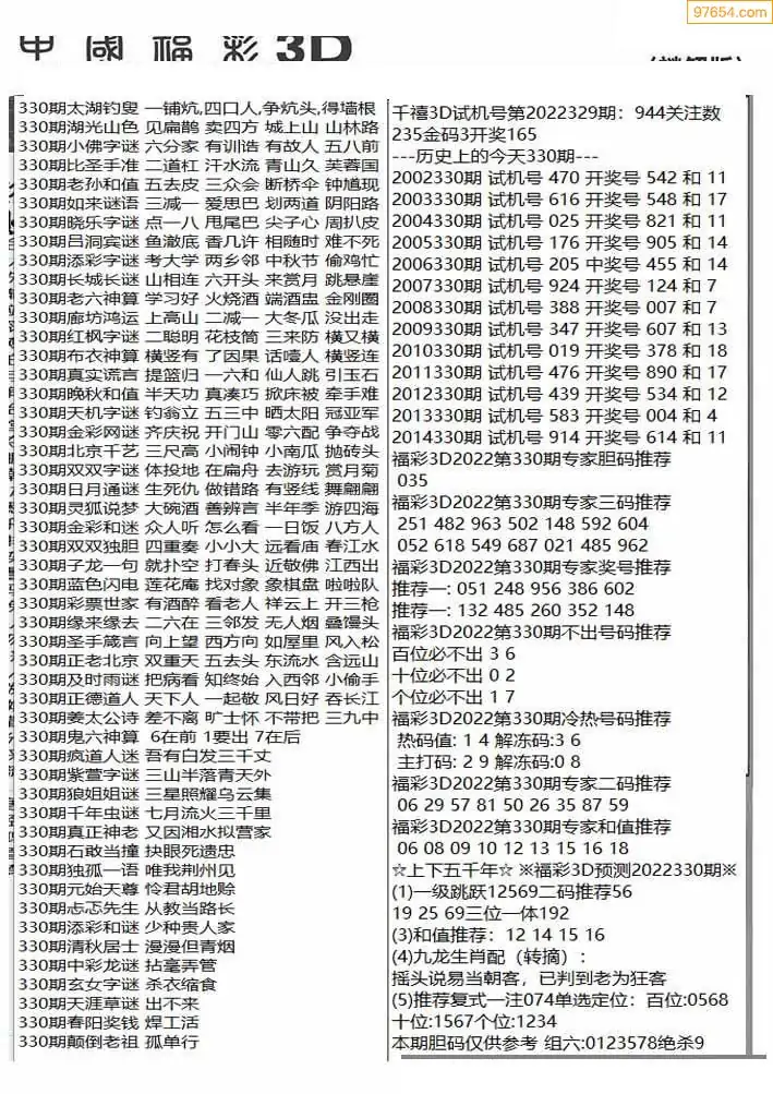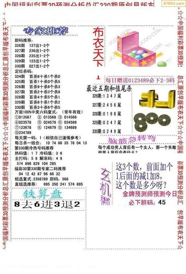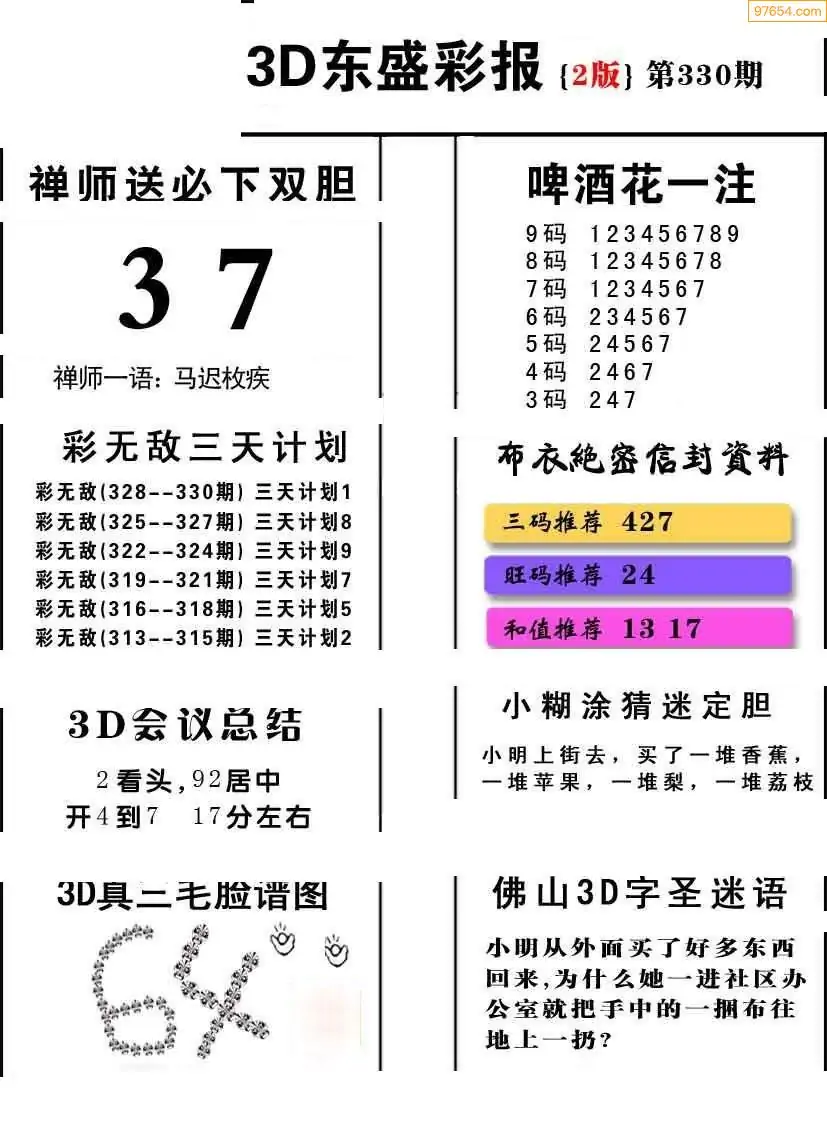 (8)25年330期今日3d各类彩报汇总