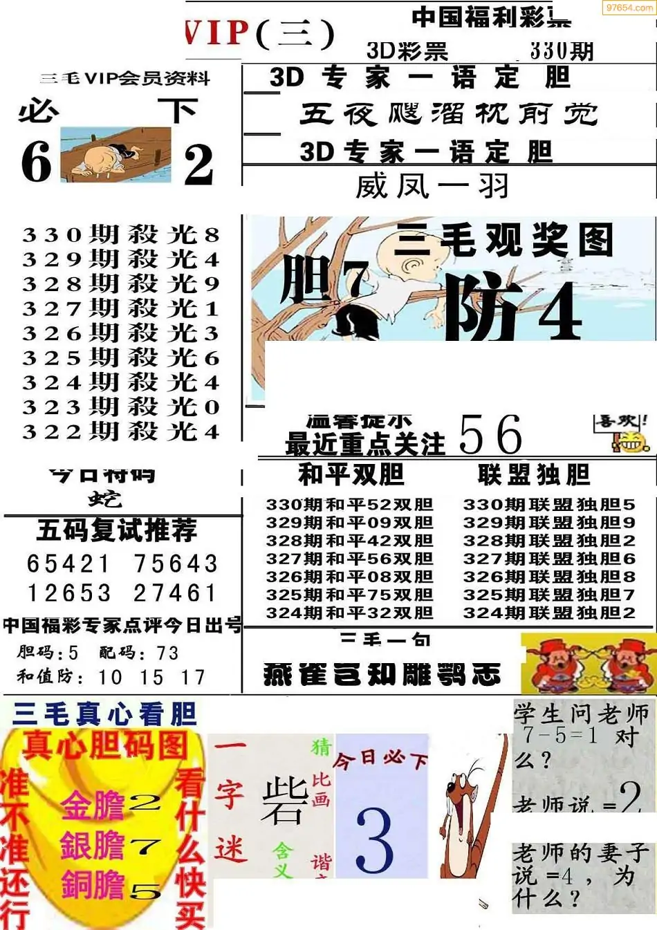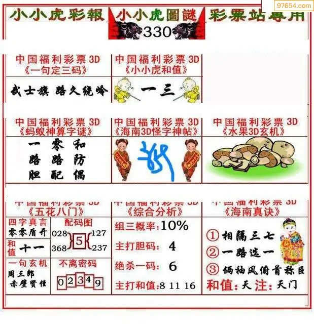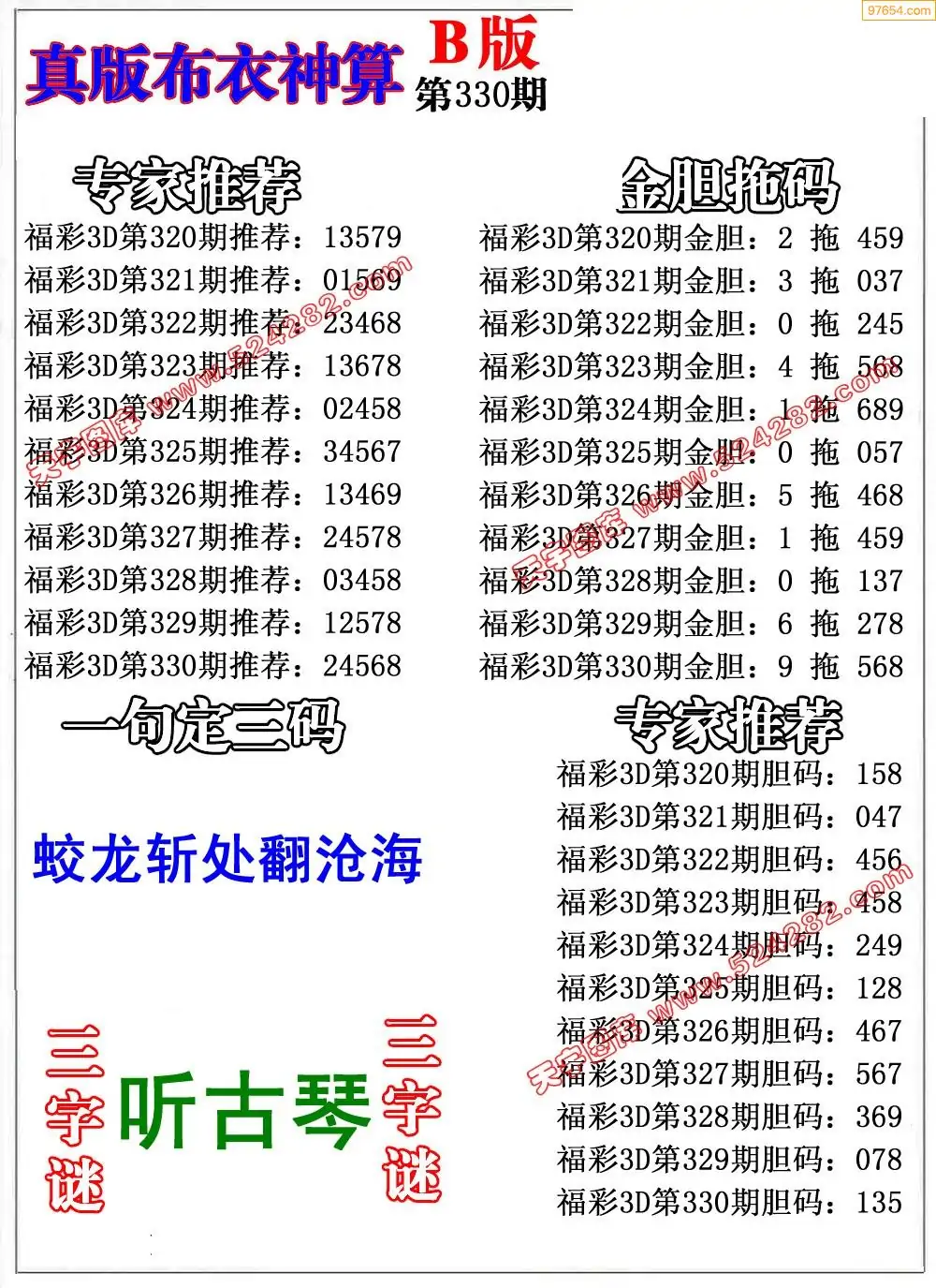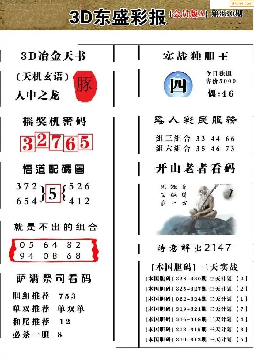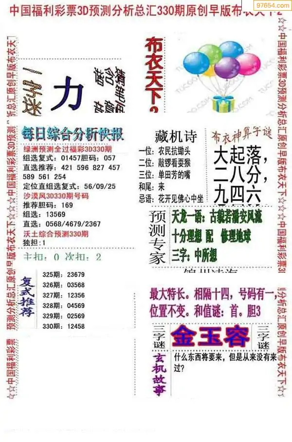 (8)25年330期今日3d各类彩报汇总