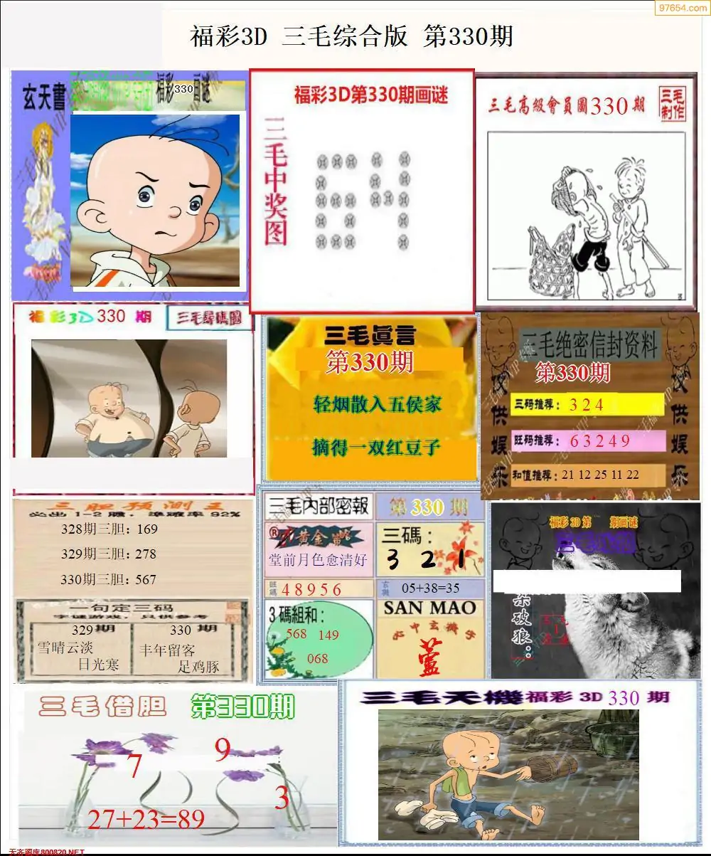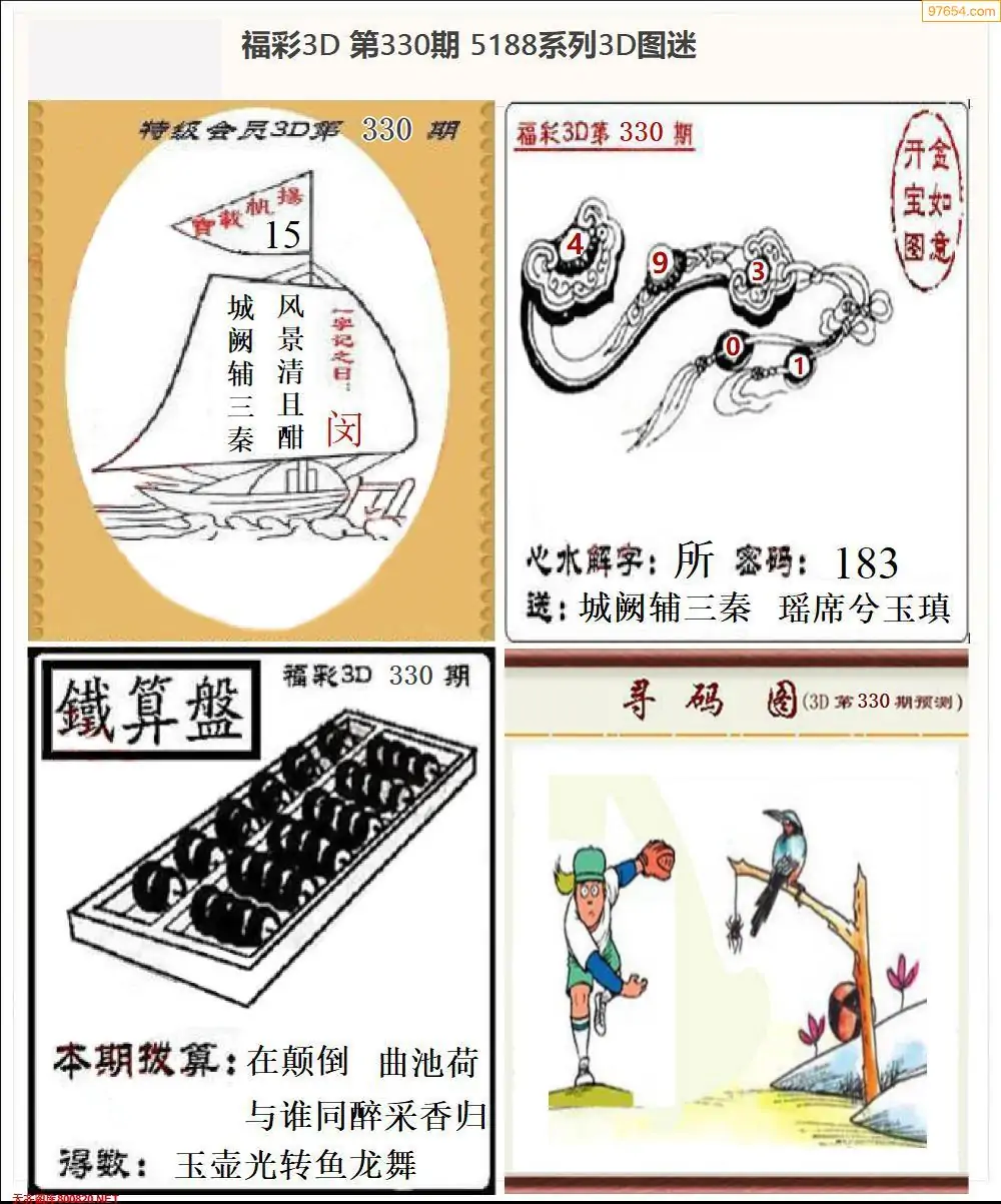 福彩3D330期天牛彩吧套图整合总汇