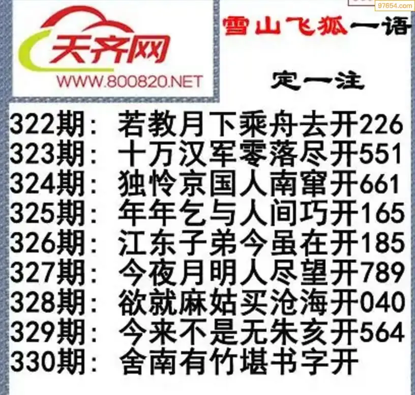 福彩3d25年330期字谜传说一句定三码