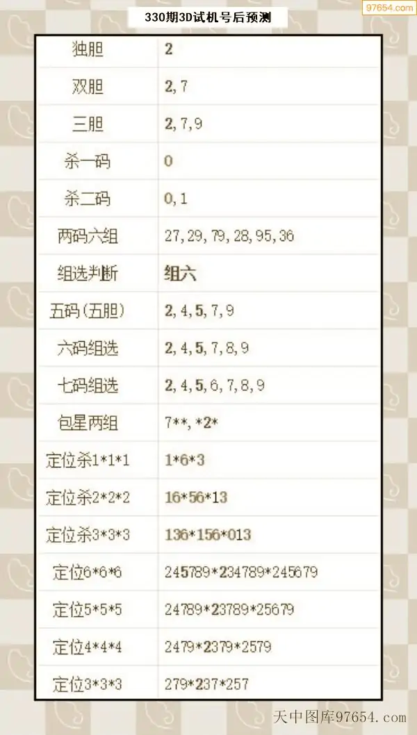 330期西南胆王预测本期3D开奖结果