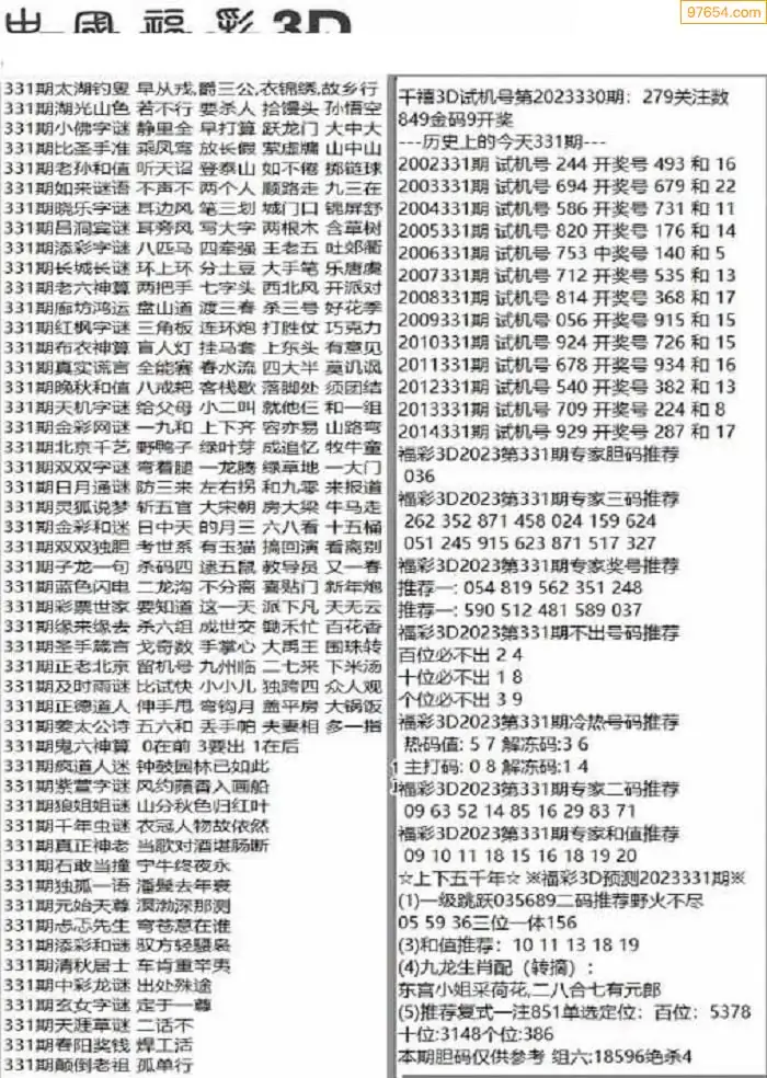 25年331期真天天图3d图迷