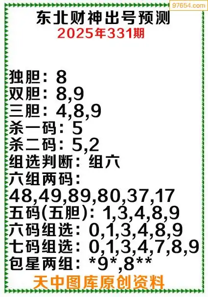 3d原创331期东北财神预测