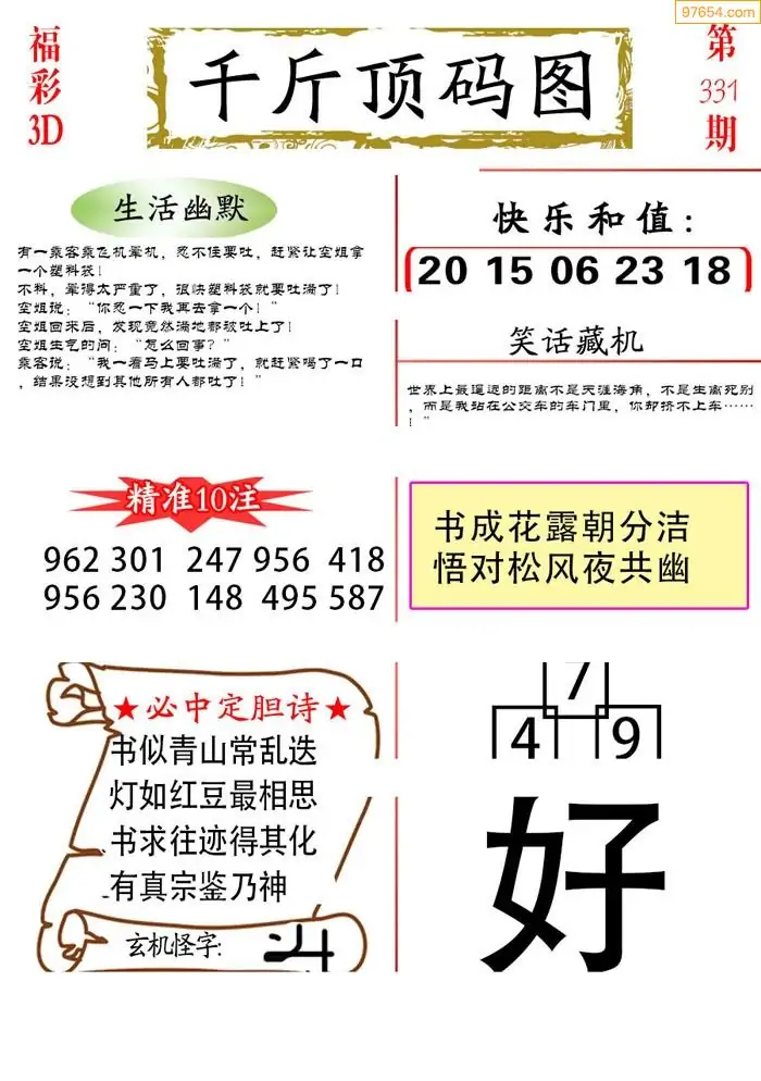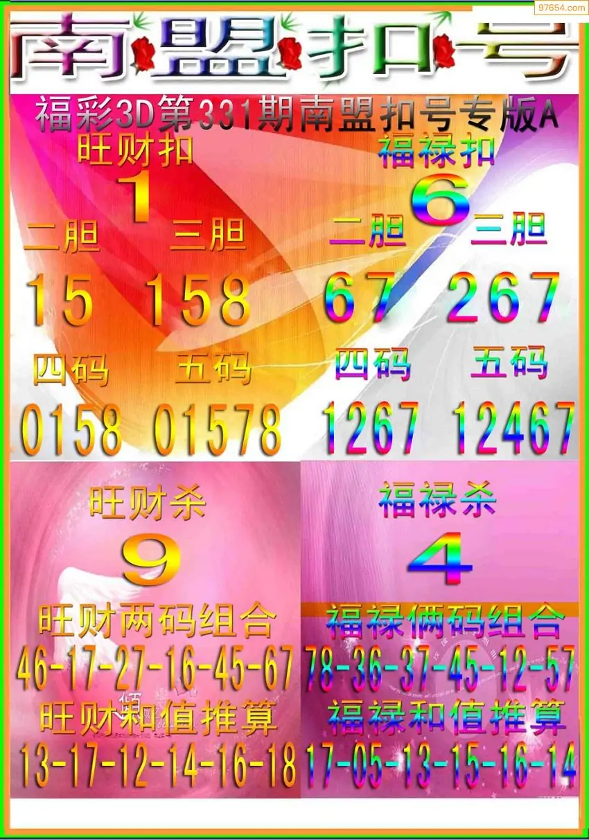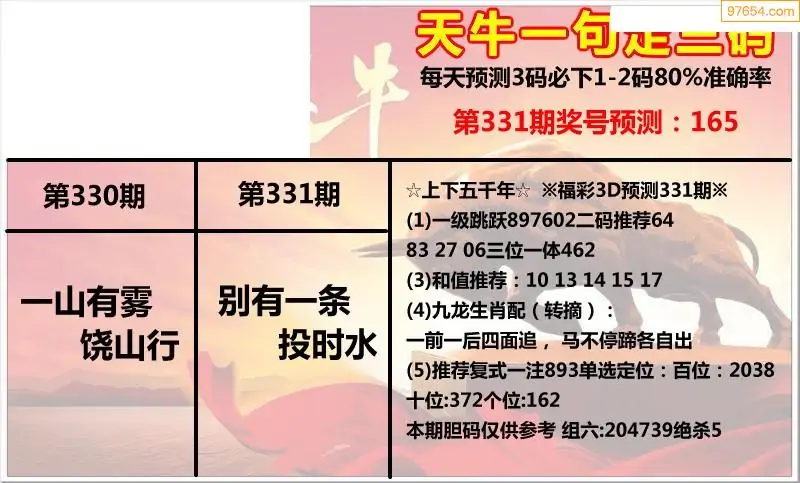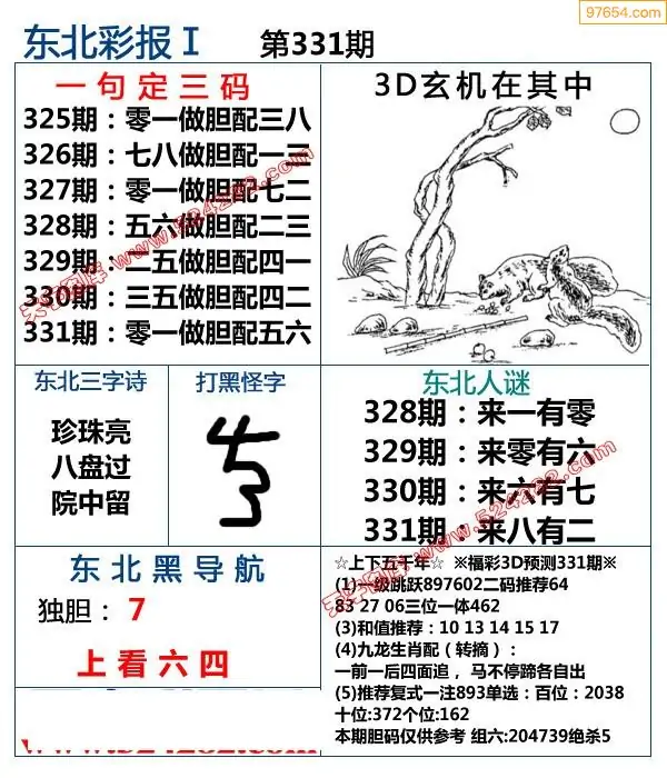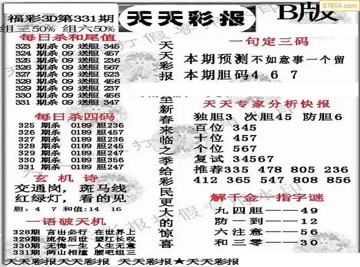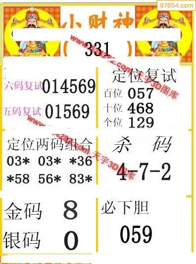 福彩3D331期天牛彩吧套图整合总汇