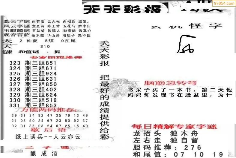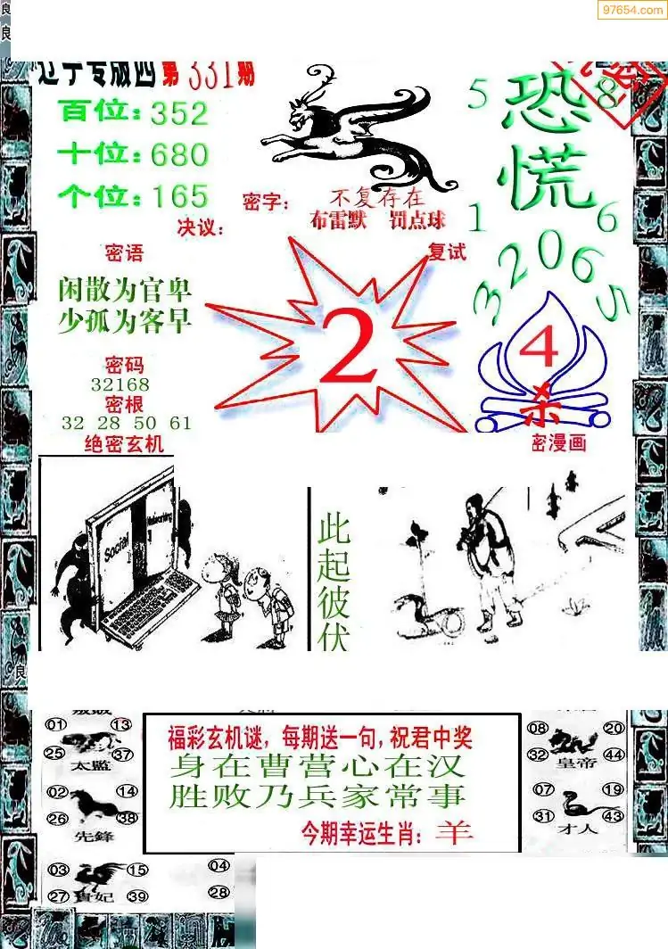 331期福彩天机壁怪字图