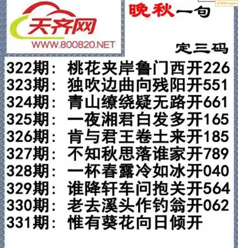 331期3d福彩今日晚秋字谜一句定三码